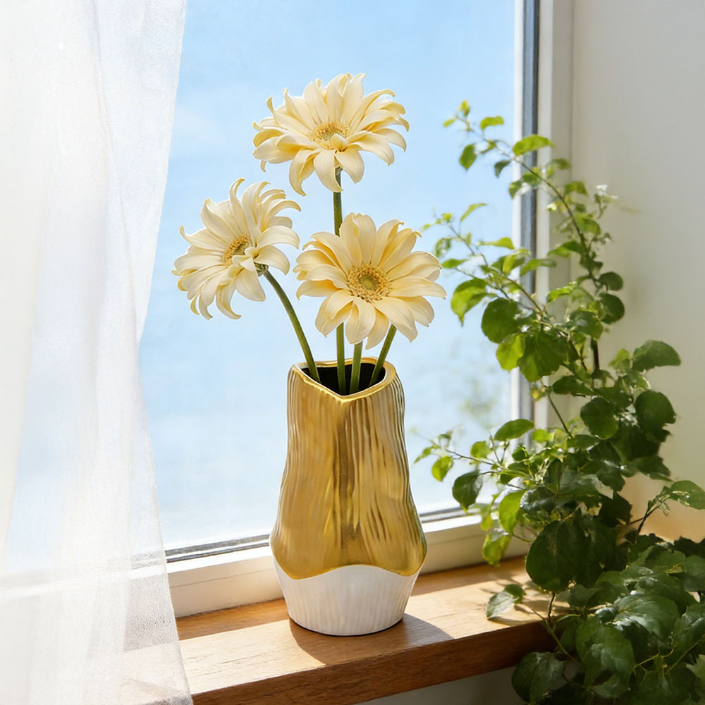 Ваза керамическая, цвет бело-золотой, 13*21,5 см
