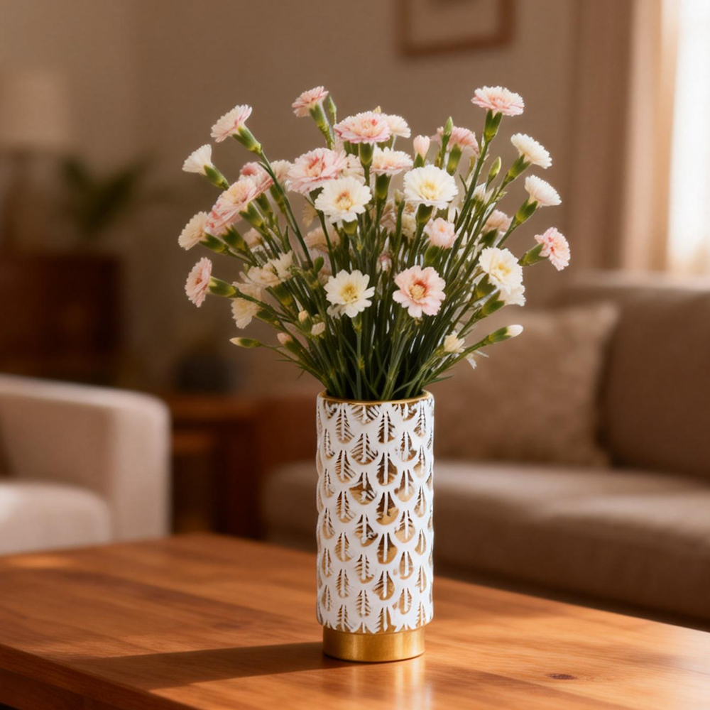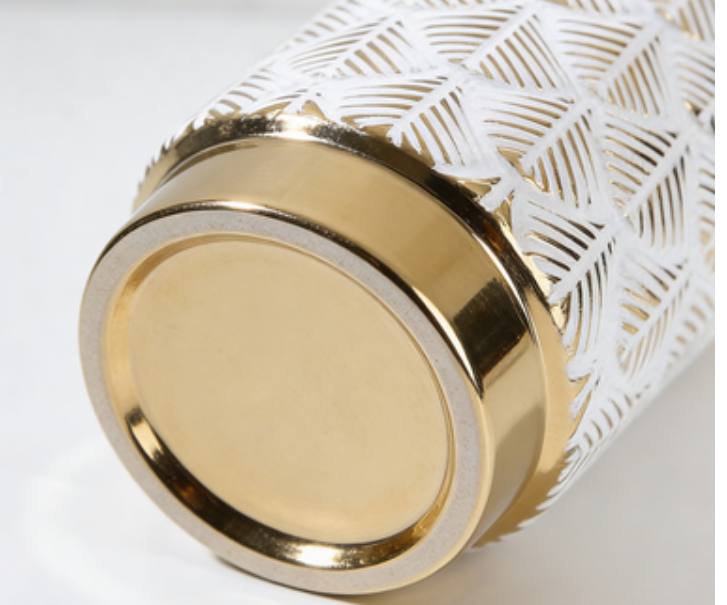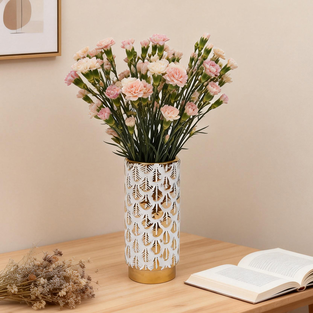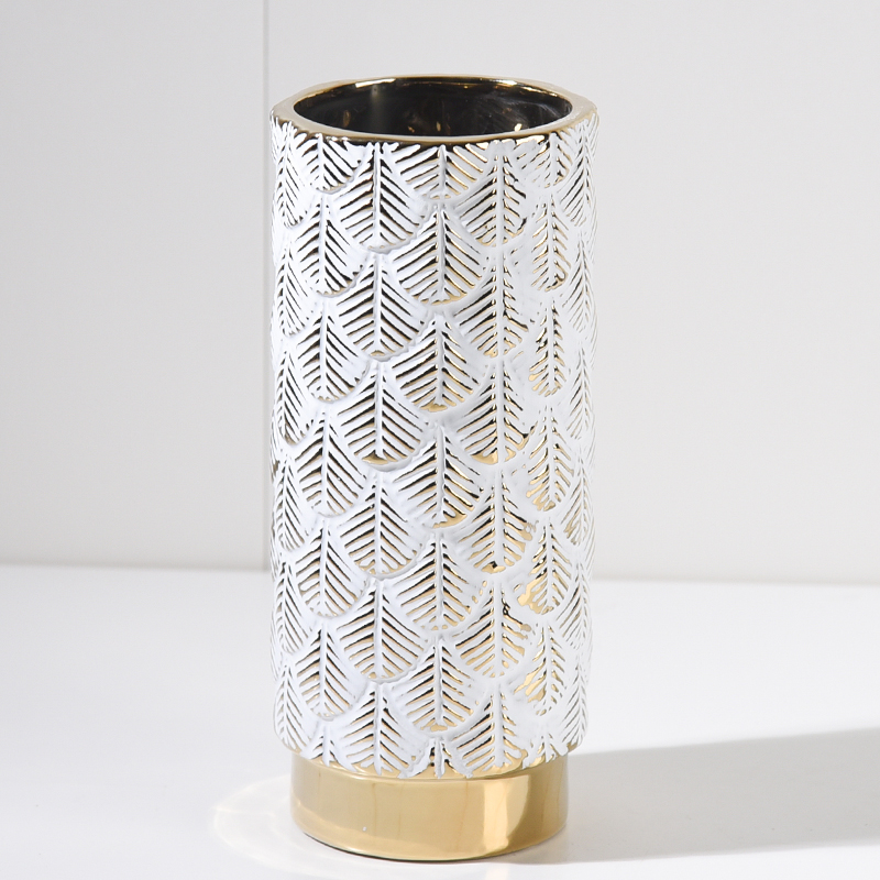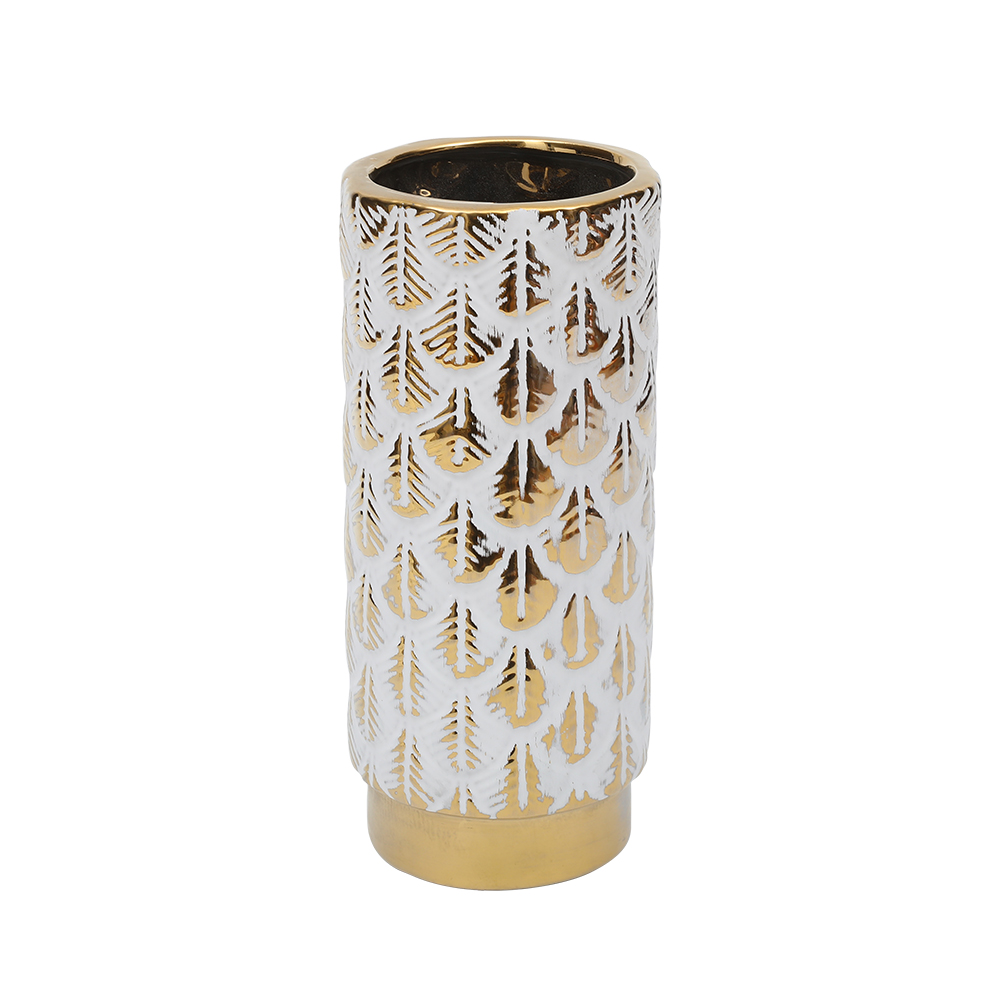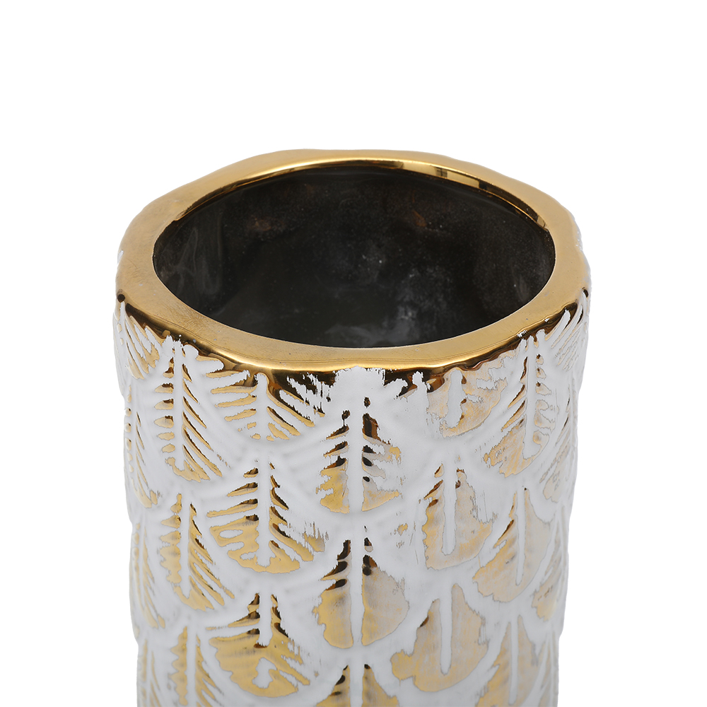 Ваза керамическая "Листья", цвет бело-золотой, 11*25 см