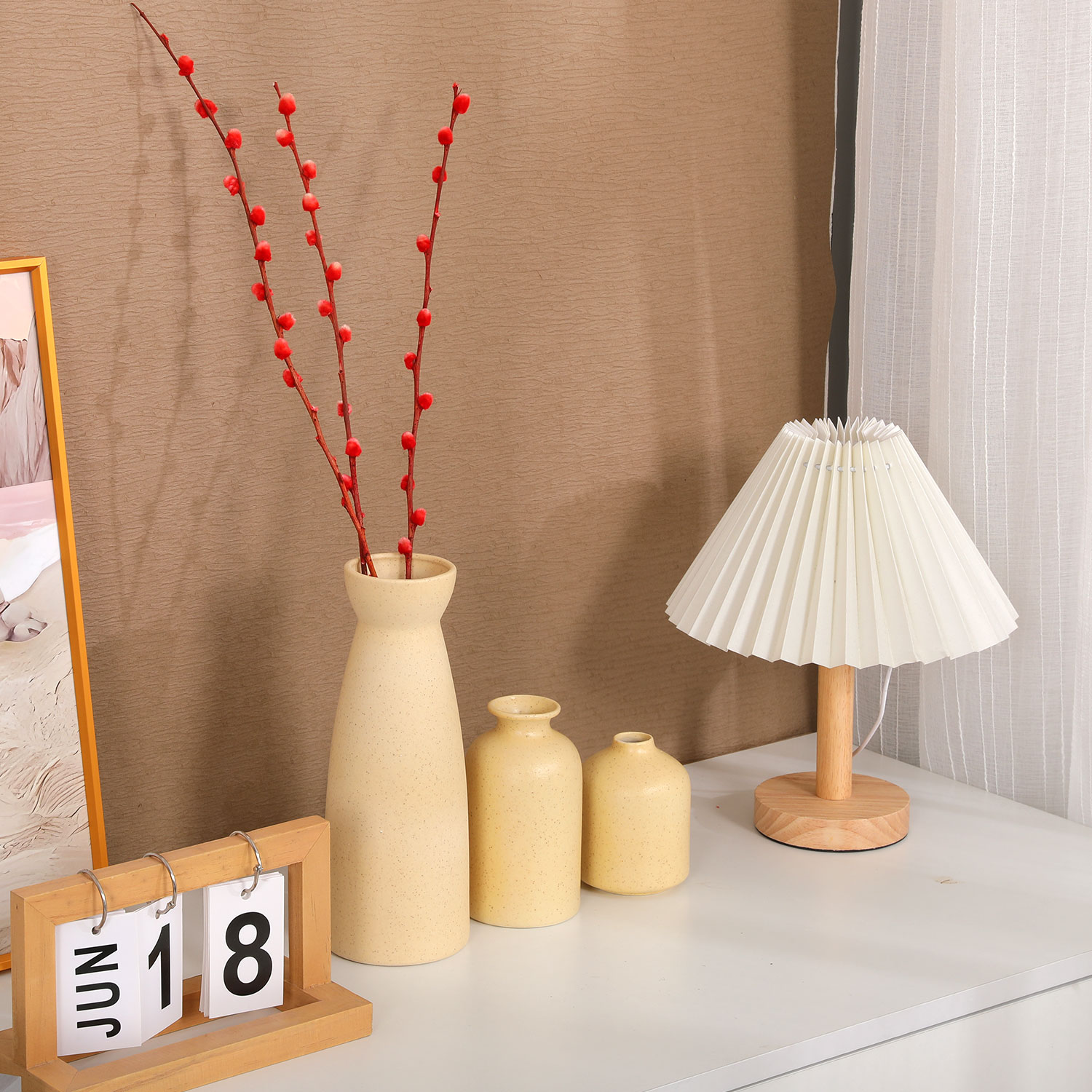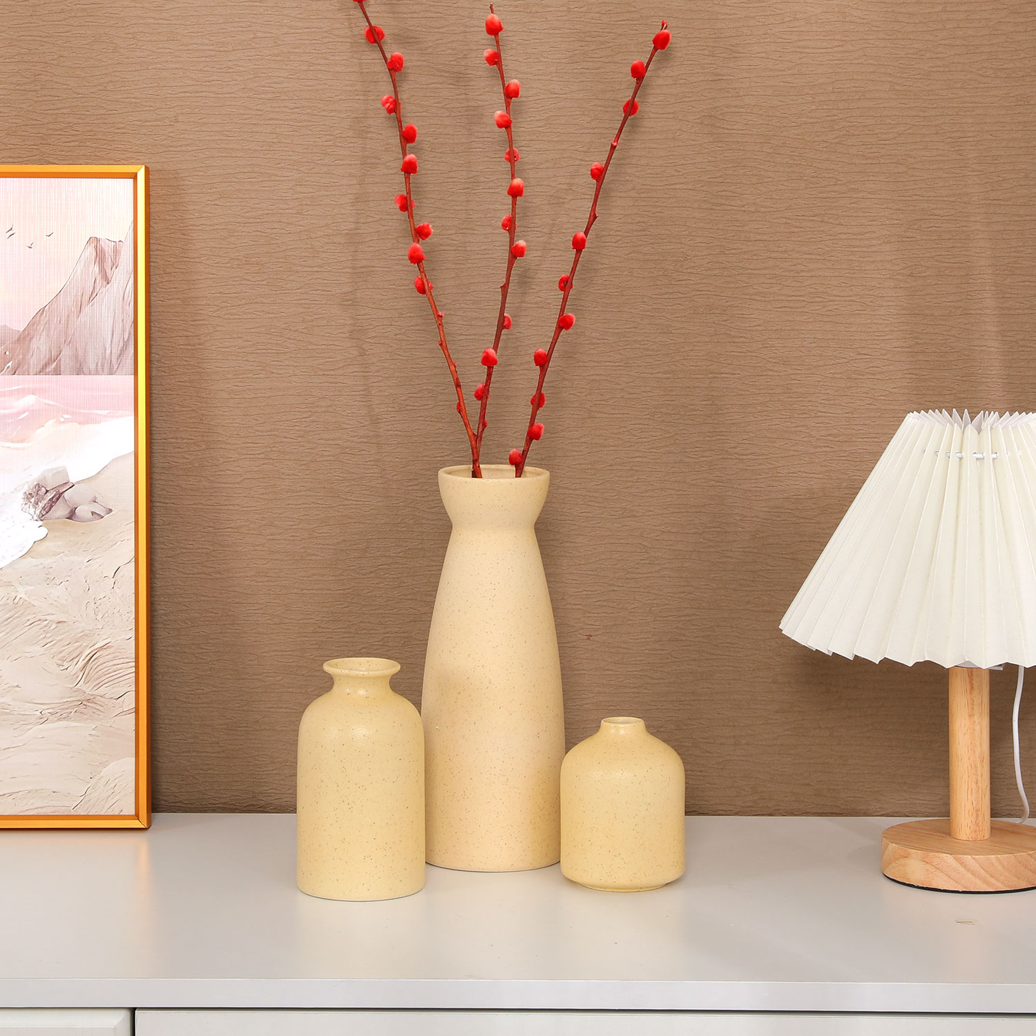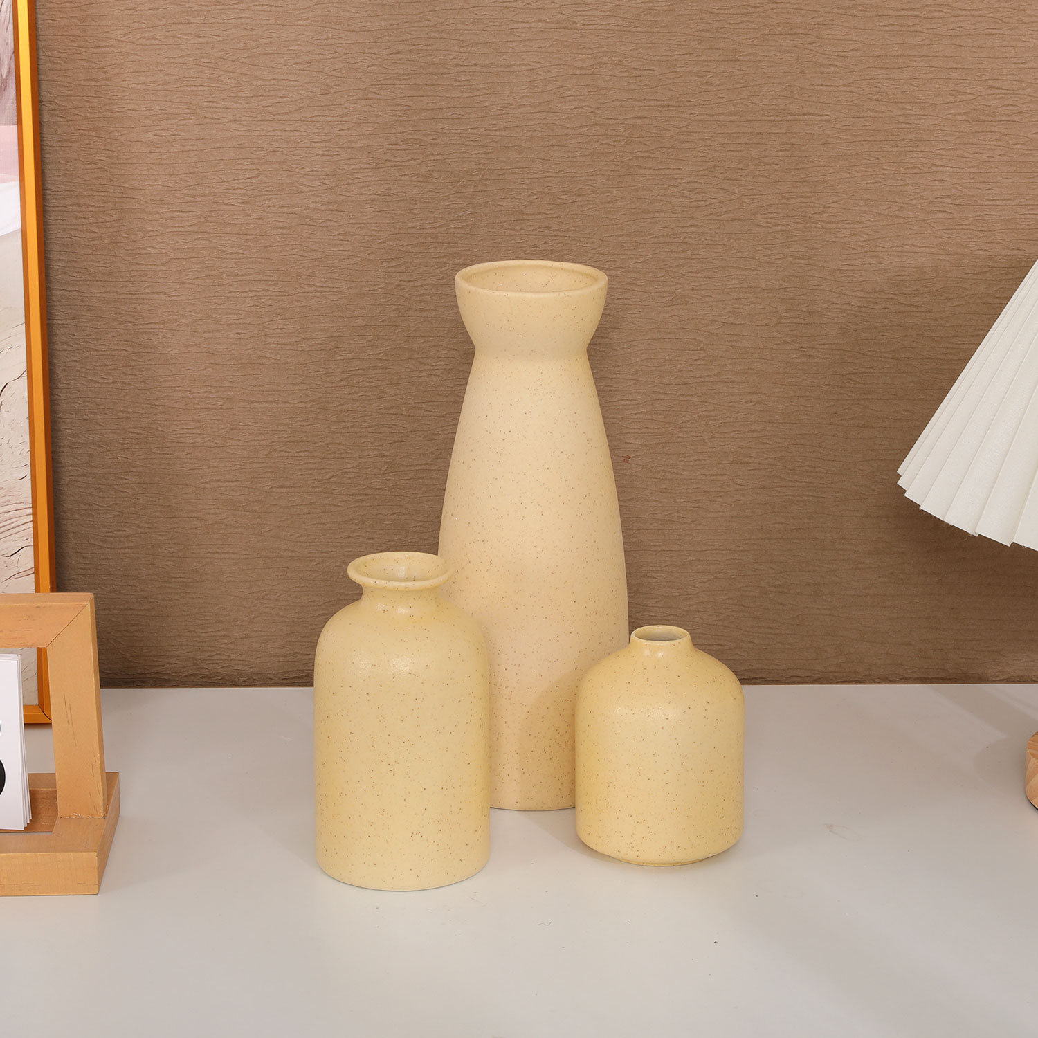 Набор декоративных керамических ваз 3 шт: 7,2*9,5/7,2*12,7/8,5*22,5 см., цвет бежевый