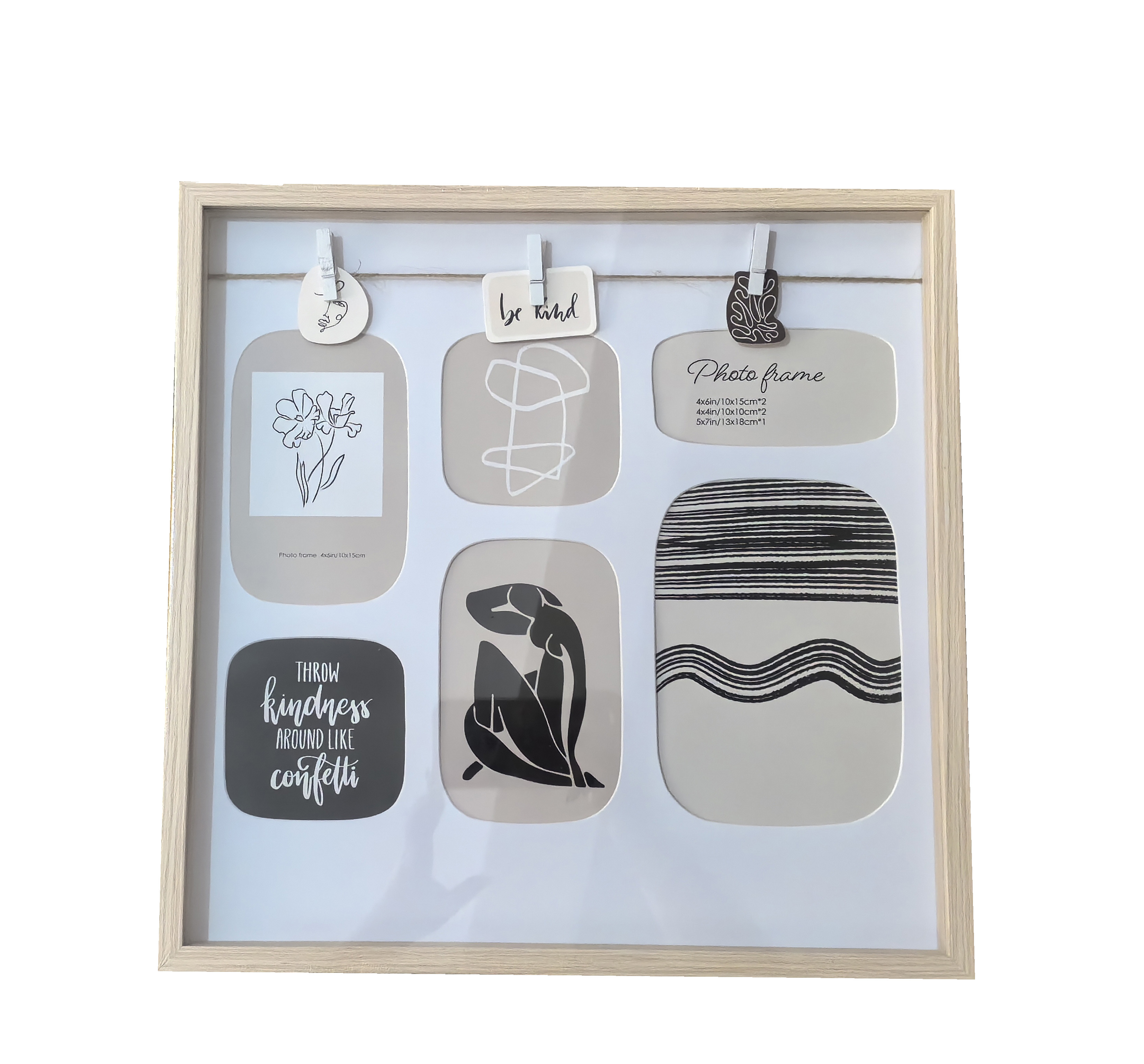 Фоторамка-коллаж декоративная из МДФ для 6 фотографий, со стеклом, 38x2,7x38 см