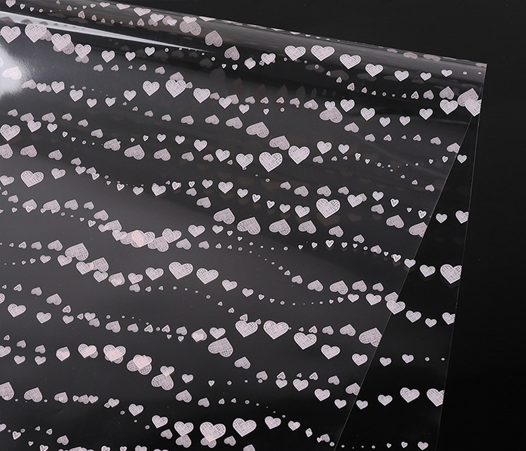 Упак. материал флористическая пленка "Сердечные нити", 50 мкр, 57 см х 10 м, св-розовый