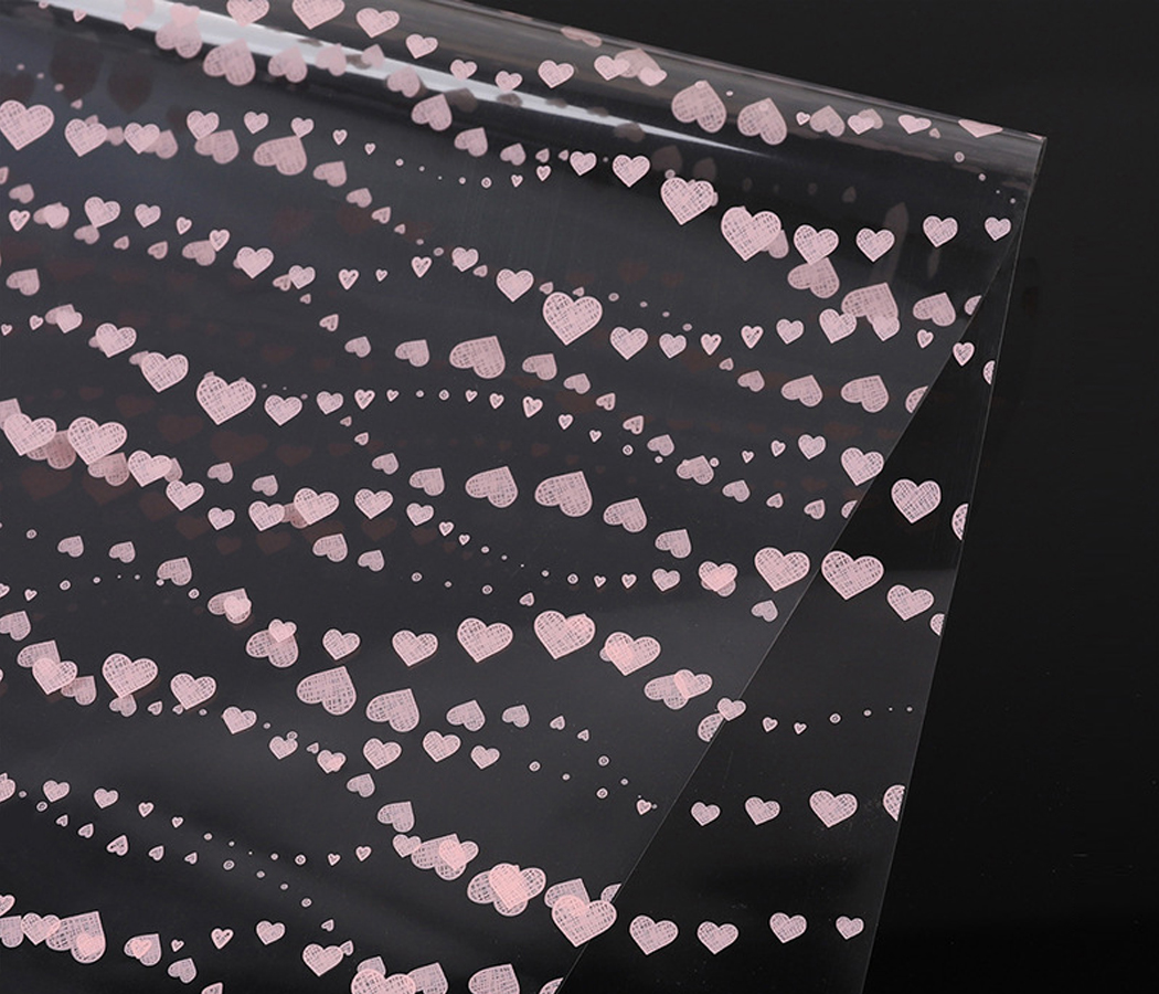 Упак. материал флористическая пленка "Сердечные нити", 50 мкр, 57 см х 10 м, бежево-розовый