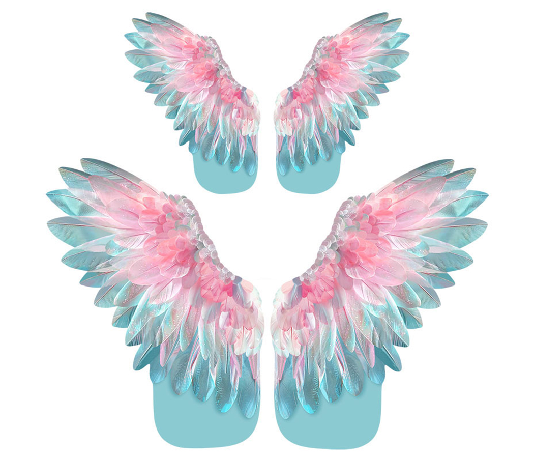 Упак. бумага "Крылья ангела", набор крыло L:50*37см + крыло S:33*22см, 10 наборов (20 шт) /упак, мятный с розовым