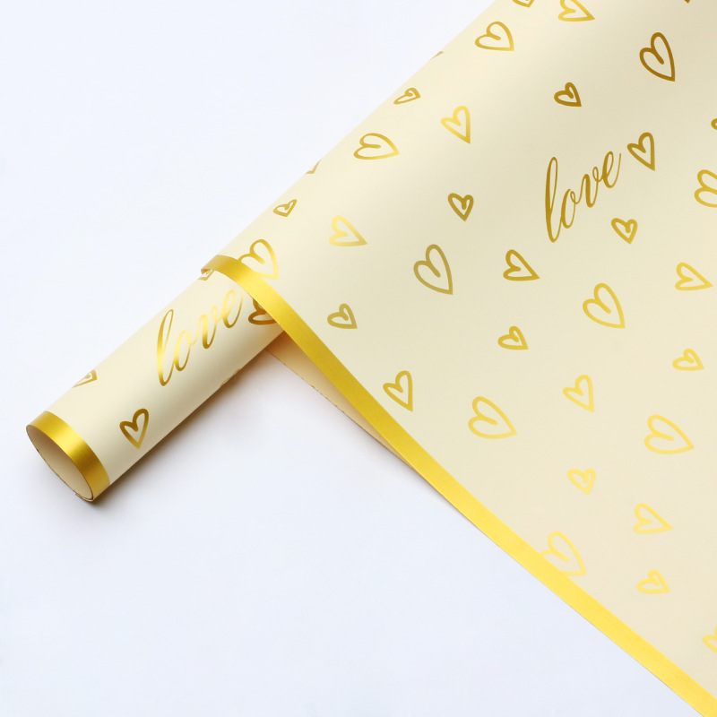 Упак. материал флористическая пленка "Золотые сердца", 65 мкр, 57 см х 57 см, 20 листов/упак. молочный
