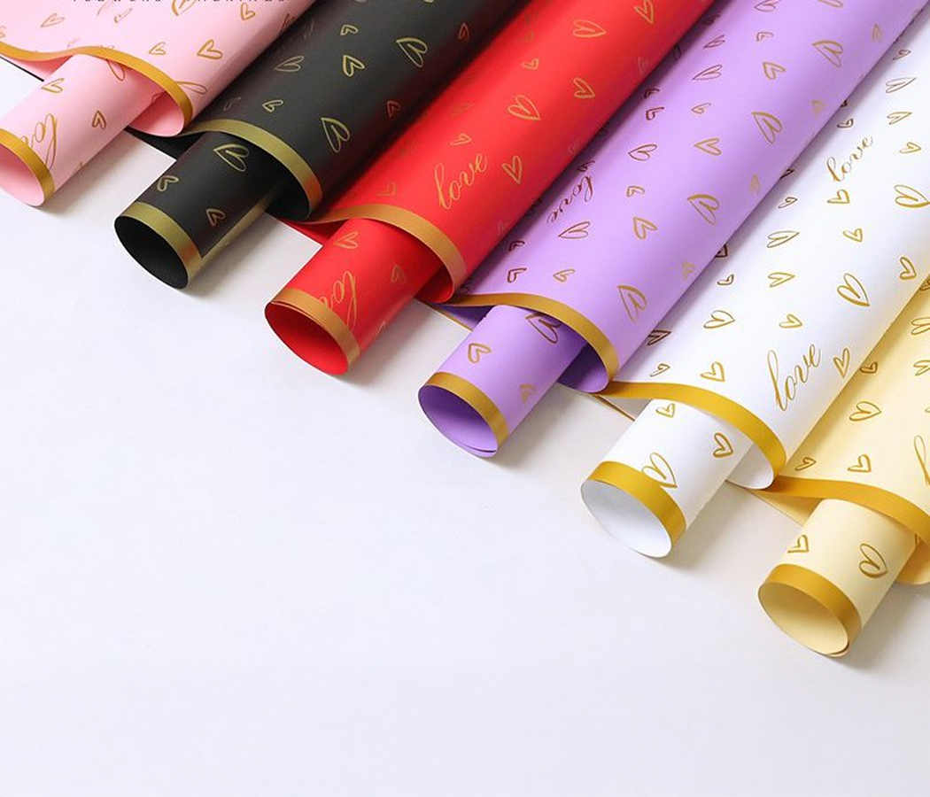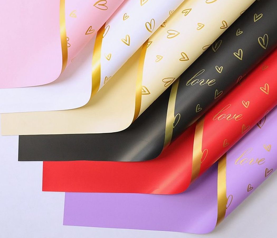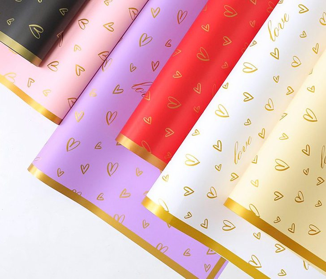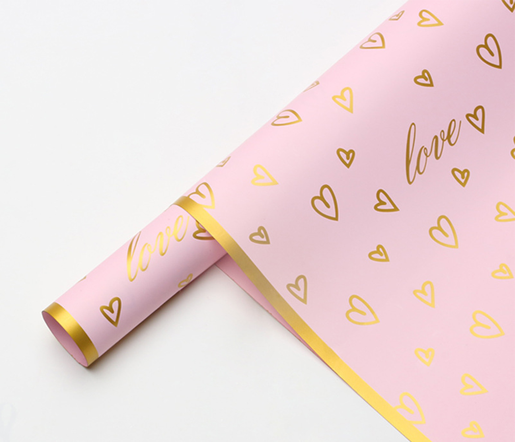 Упак. материал флористическая пленка "Золотые сердца", 65 мкр, 57 см х 57 см, 20 листов/упак. розовый