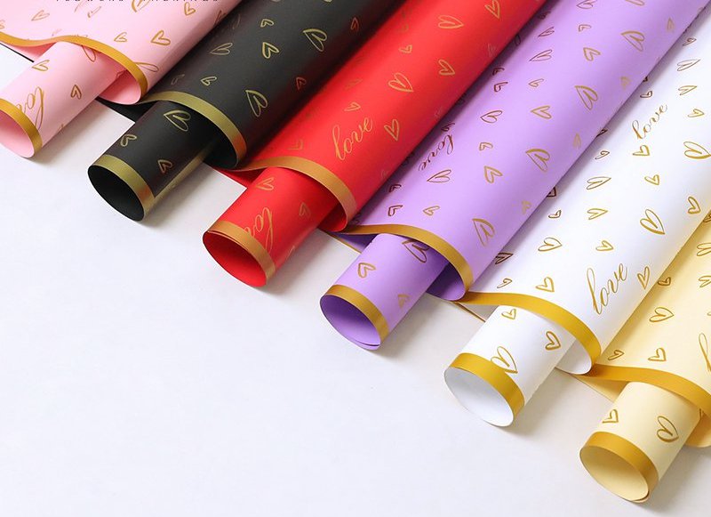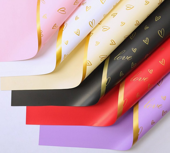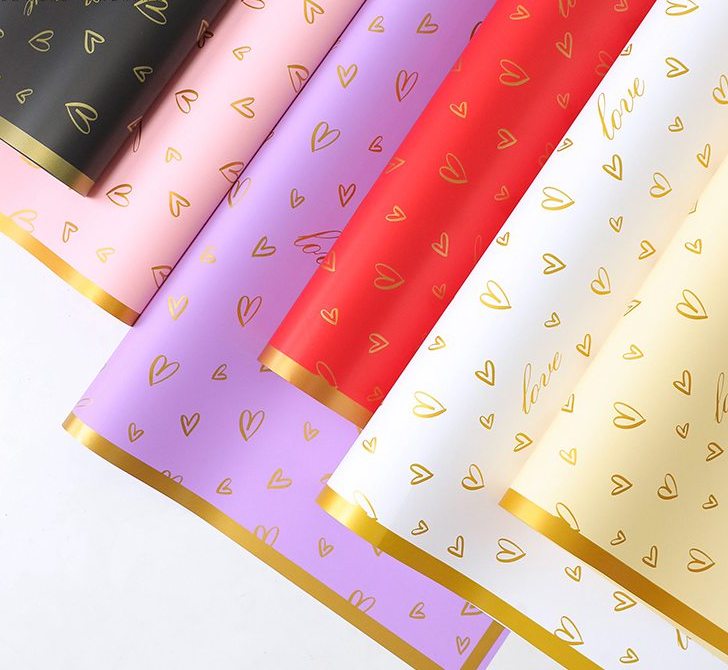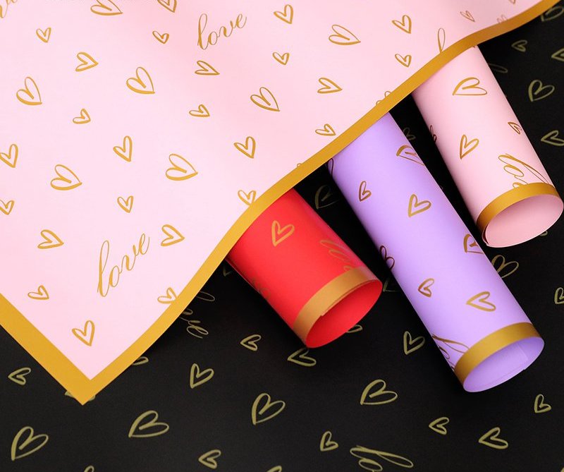 Упак. материал флористическая пленка "Золотые сердца", 65 мкр, 57 см х 57 см, 20 листов/упак. красный