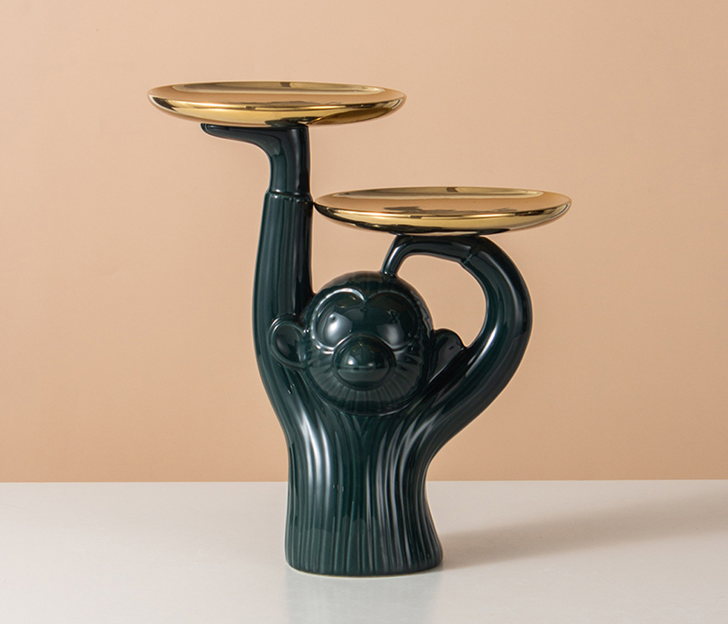 Подставка декоративная "Обезьянка", керамика, цвет зеленый, 25*15,5*27 см