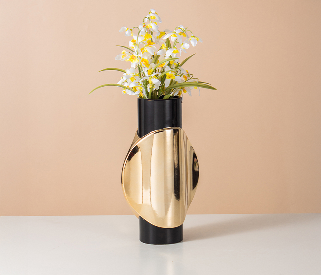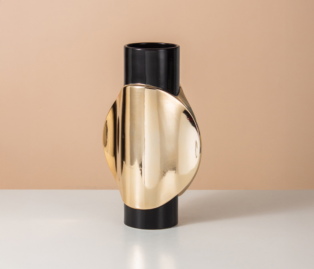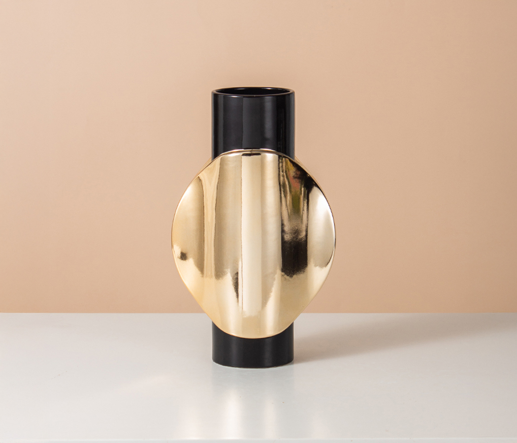 Керамическая декоративная ваза, цвет черно-золотой, 19,5*11*32 см
