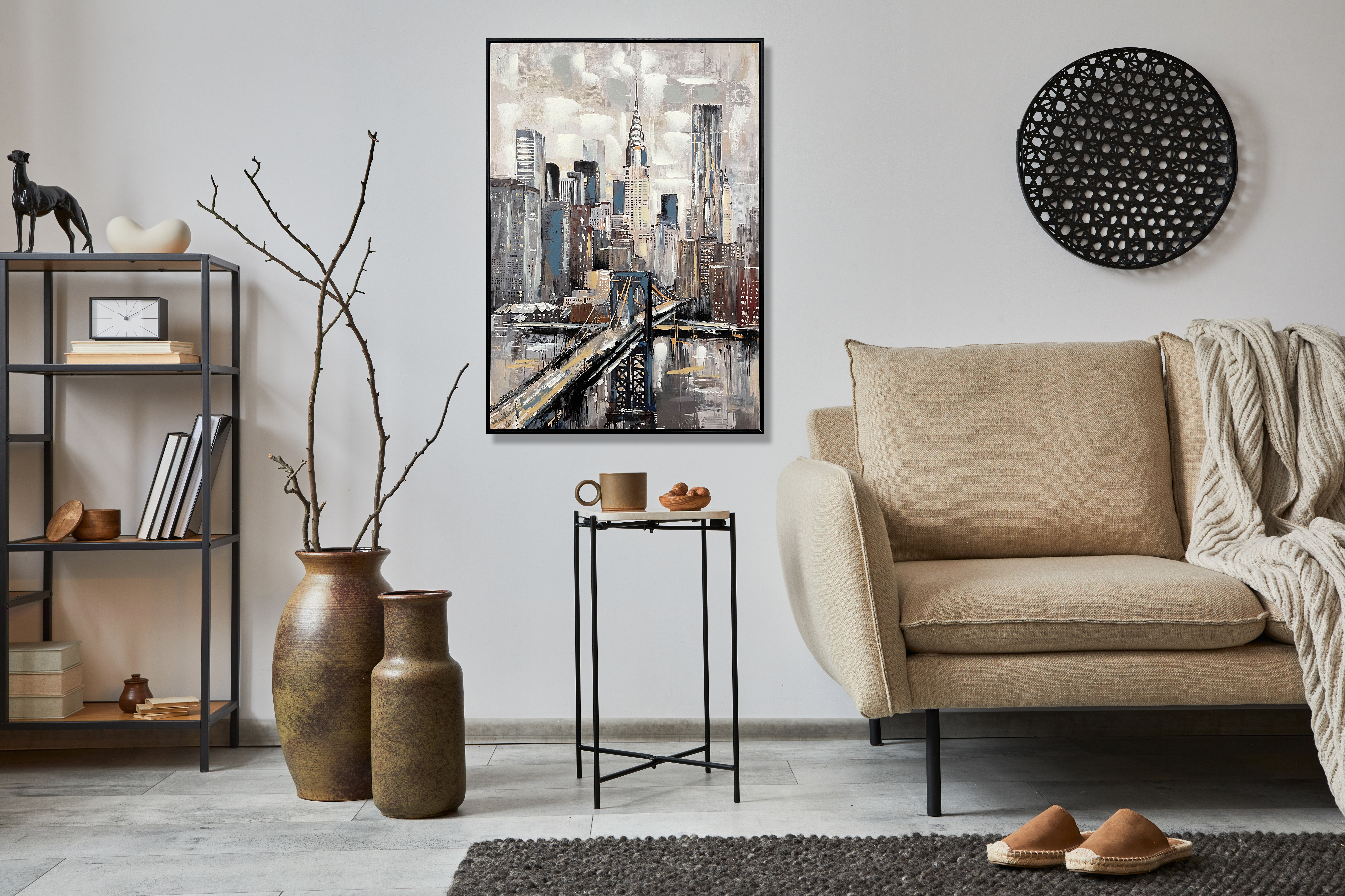 Картина "Город", 80% ручная работа, рама пластиковая, 70*100*3,5