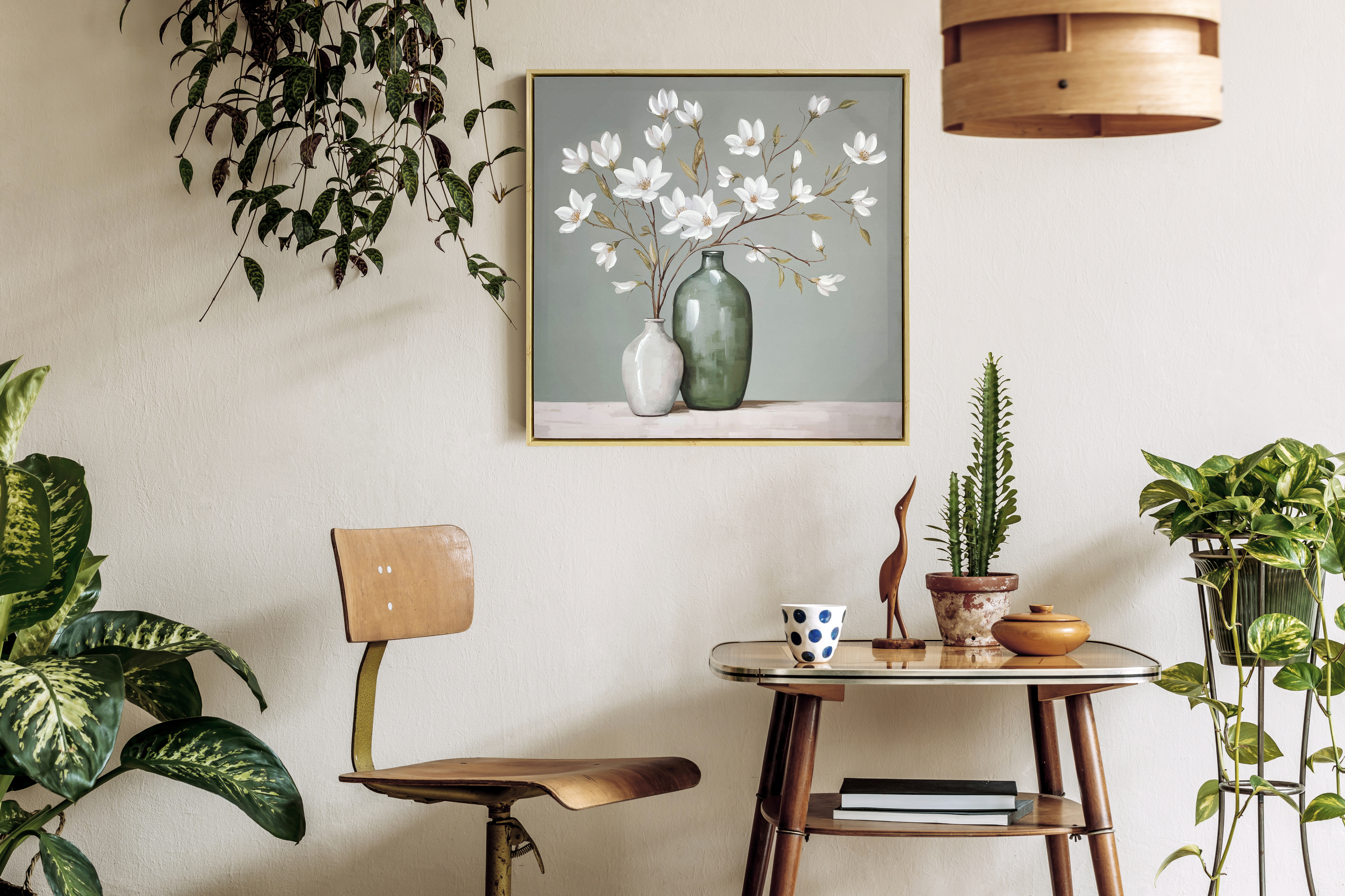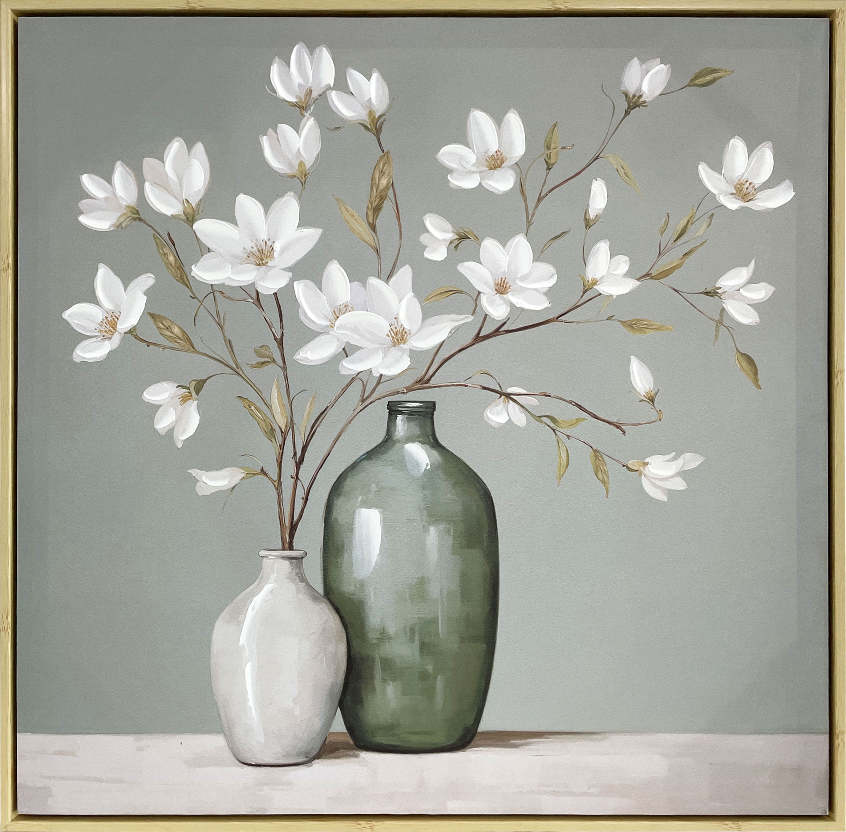 Картина "Цветы в вазе", 30% ручная работа, рама пластиковая, 60*60*3,5