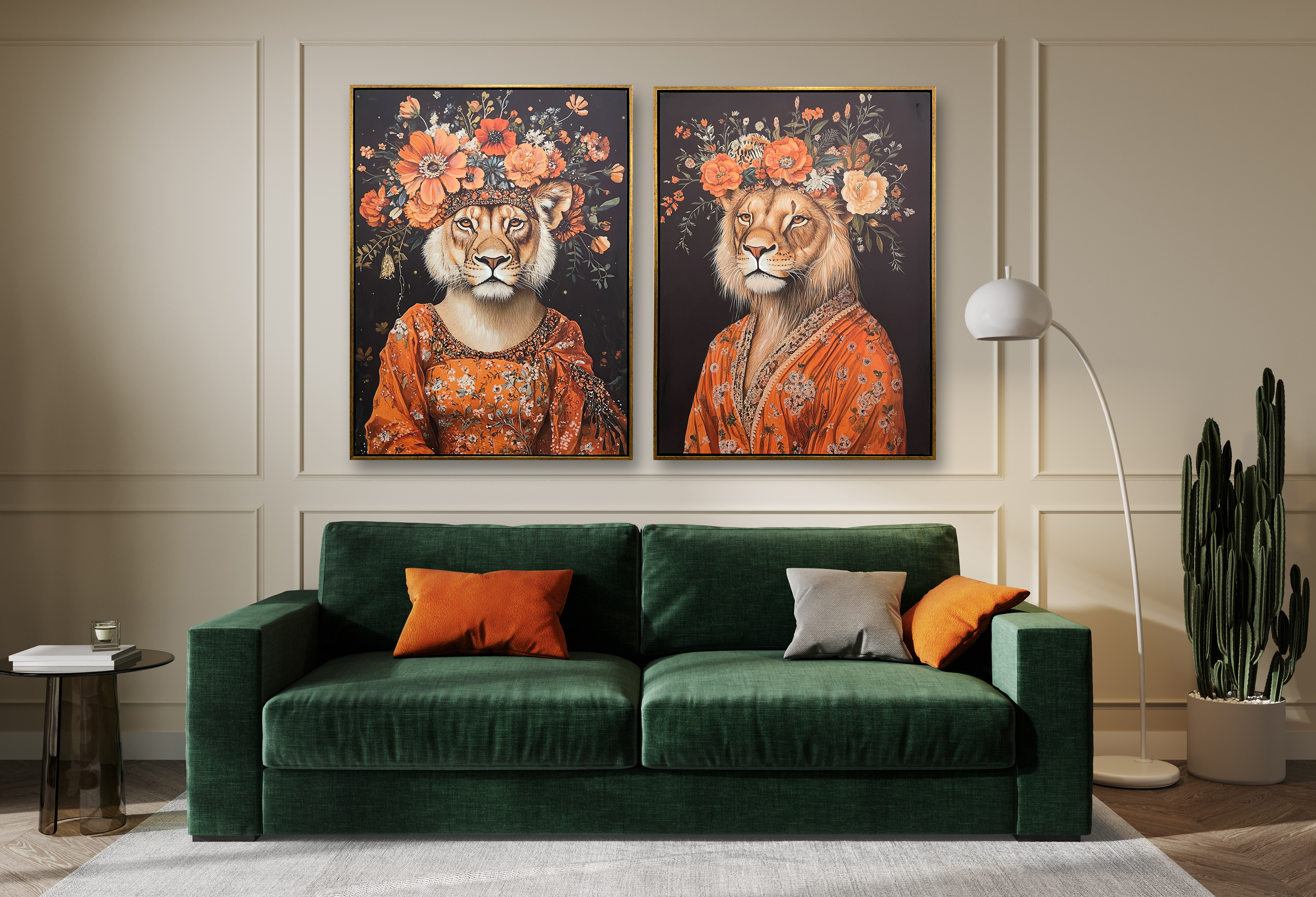 Картина "Лев II", 30% ручная работа, рама пластиковая, 60*80*3,5