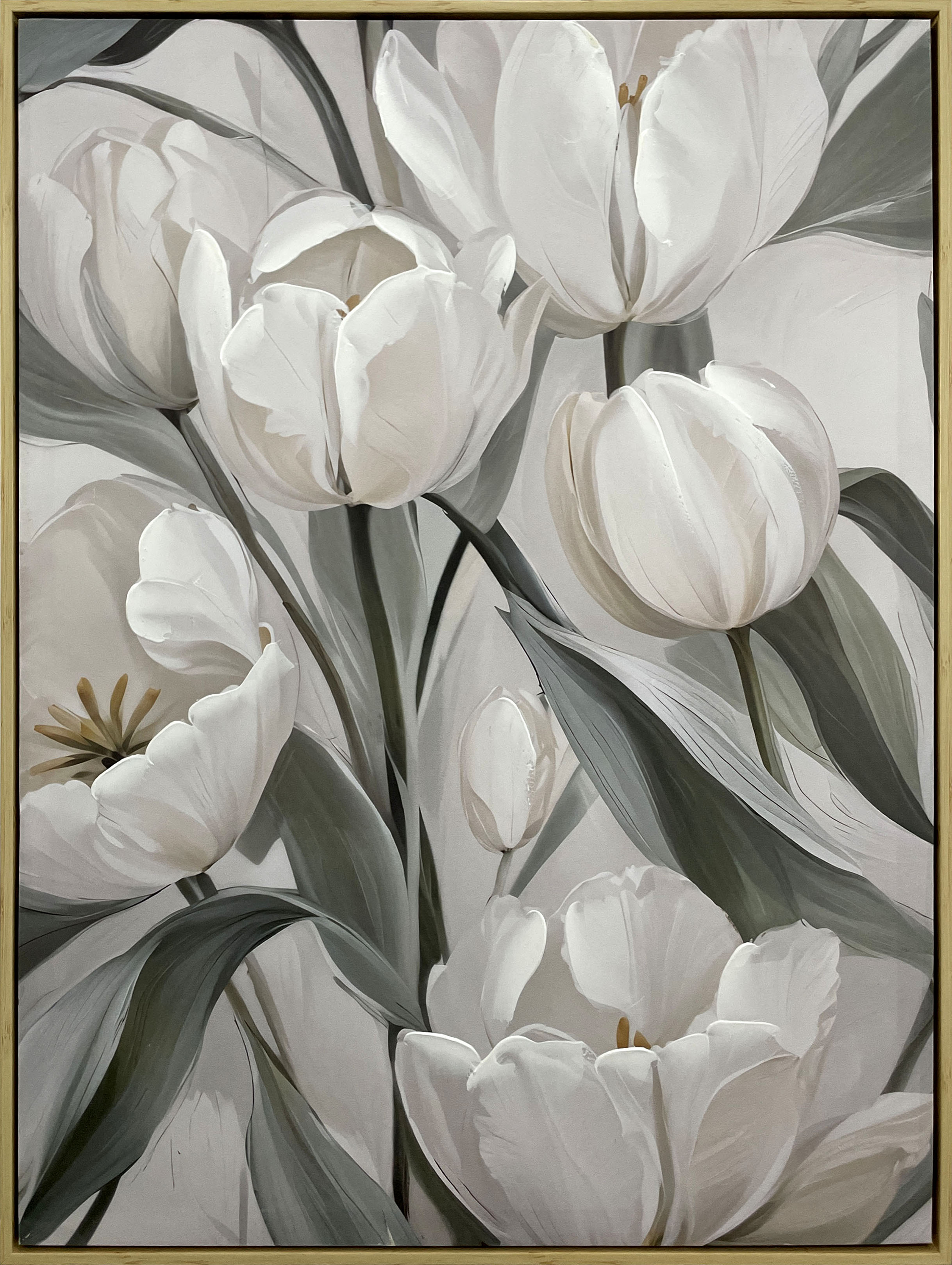 Картина "Белые тюльпаны", 30% ручная работа, рама пластиковая, 60*80*3,5