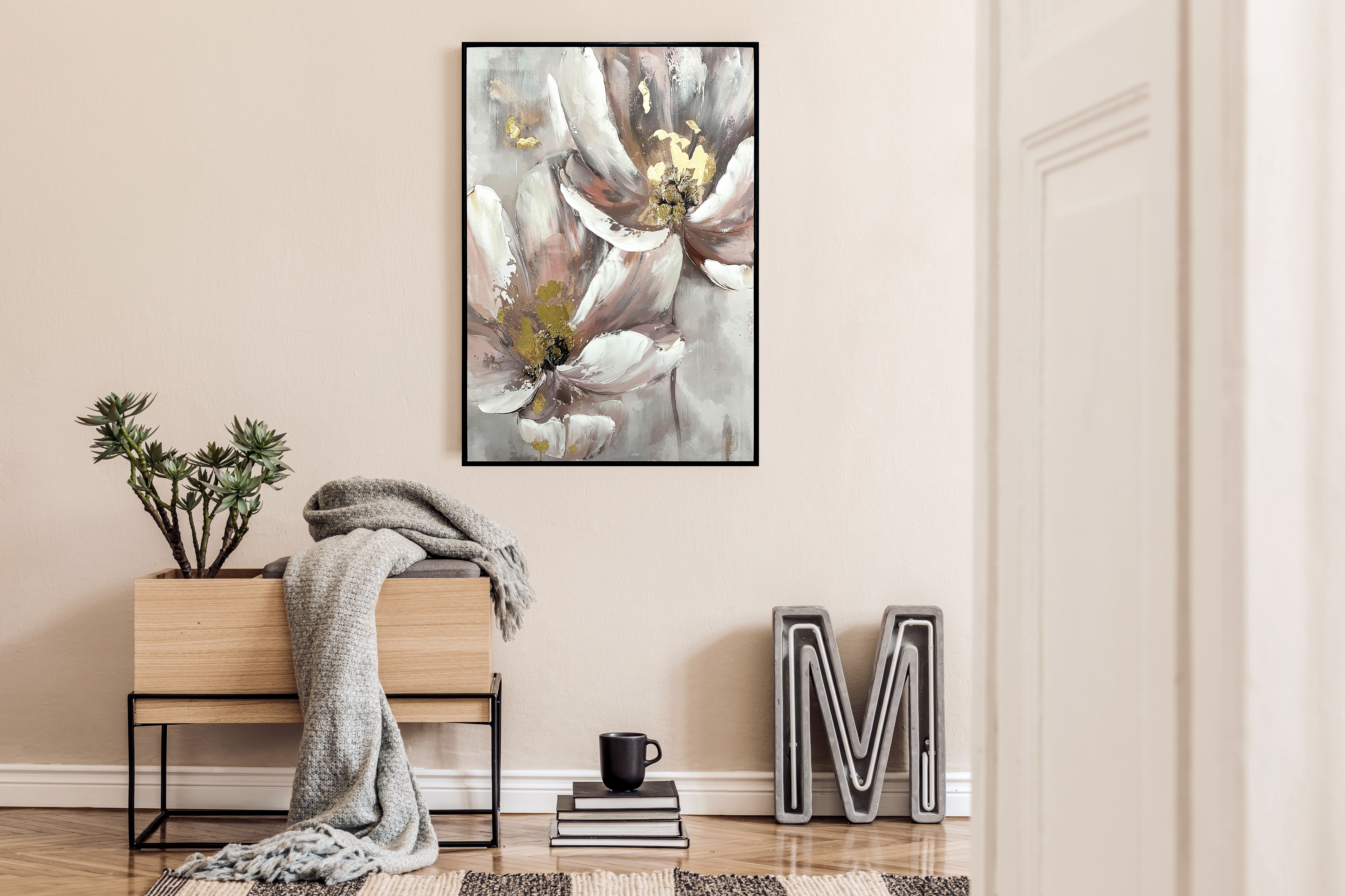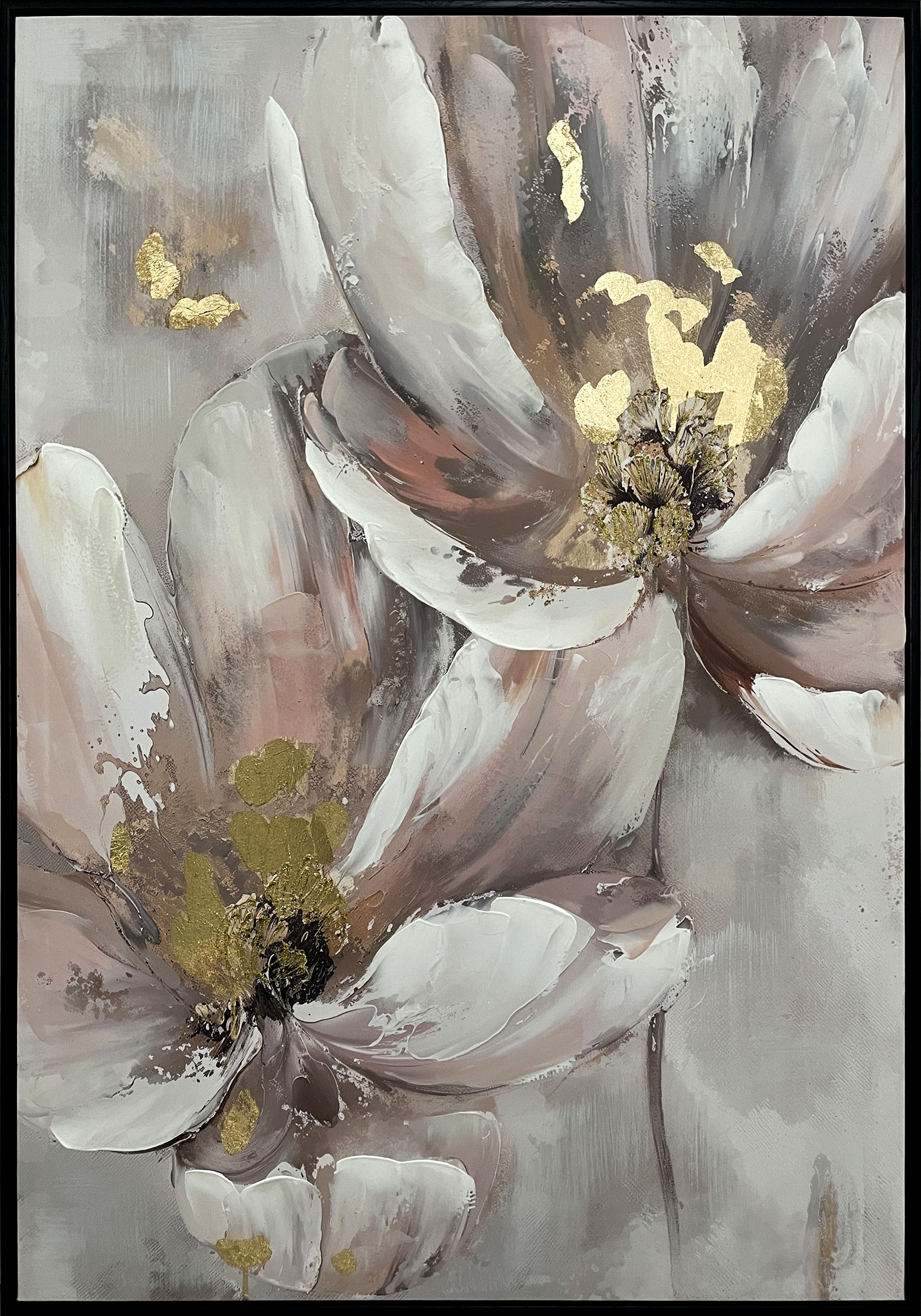 Картина "Золотые цветы", 80% ручная работа, рама пластиковая, 70*100*3,5