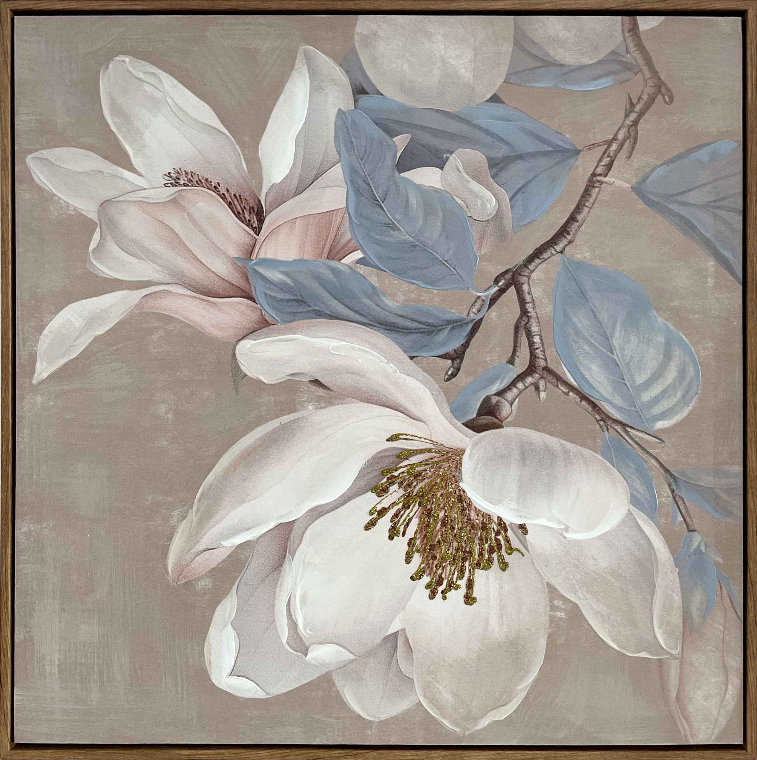 Картина "Магнолия II", 80% ручная работа, рама пластиковая, 60*60*3,5