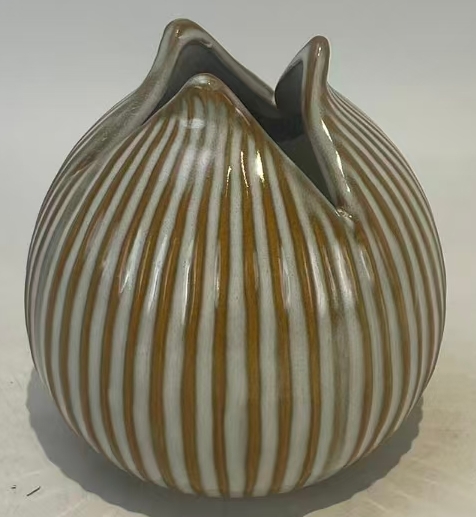 Ваза керамическая "Гранат" с вертикальными полосами, цвет коричнево-бежевый, 12*12*11,6 см.