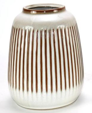 Ваза керамическая с вертикальными полосами, цвет коричнево-бежевый, 14*14*25 см.