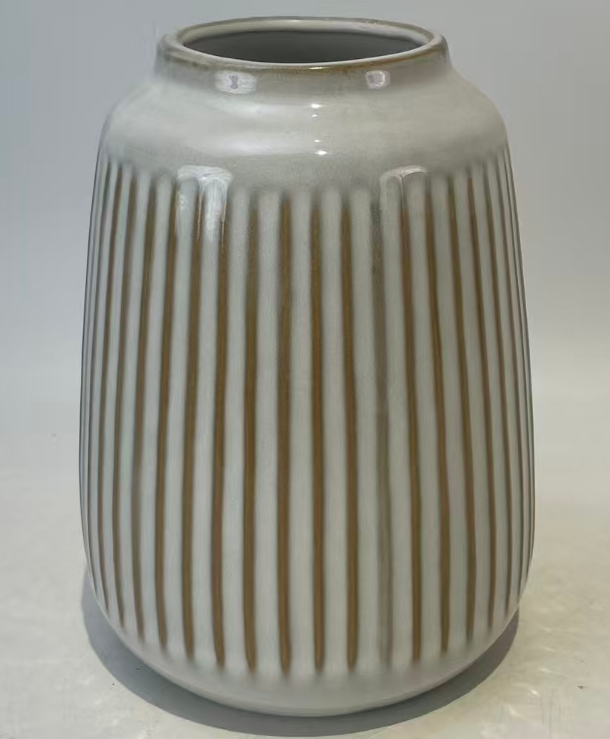 Ваза керамическая с вертикальными полосами, цвет коричнево-бежевый, 17*17*18,5 см.