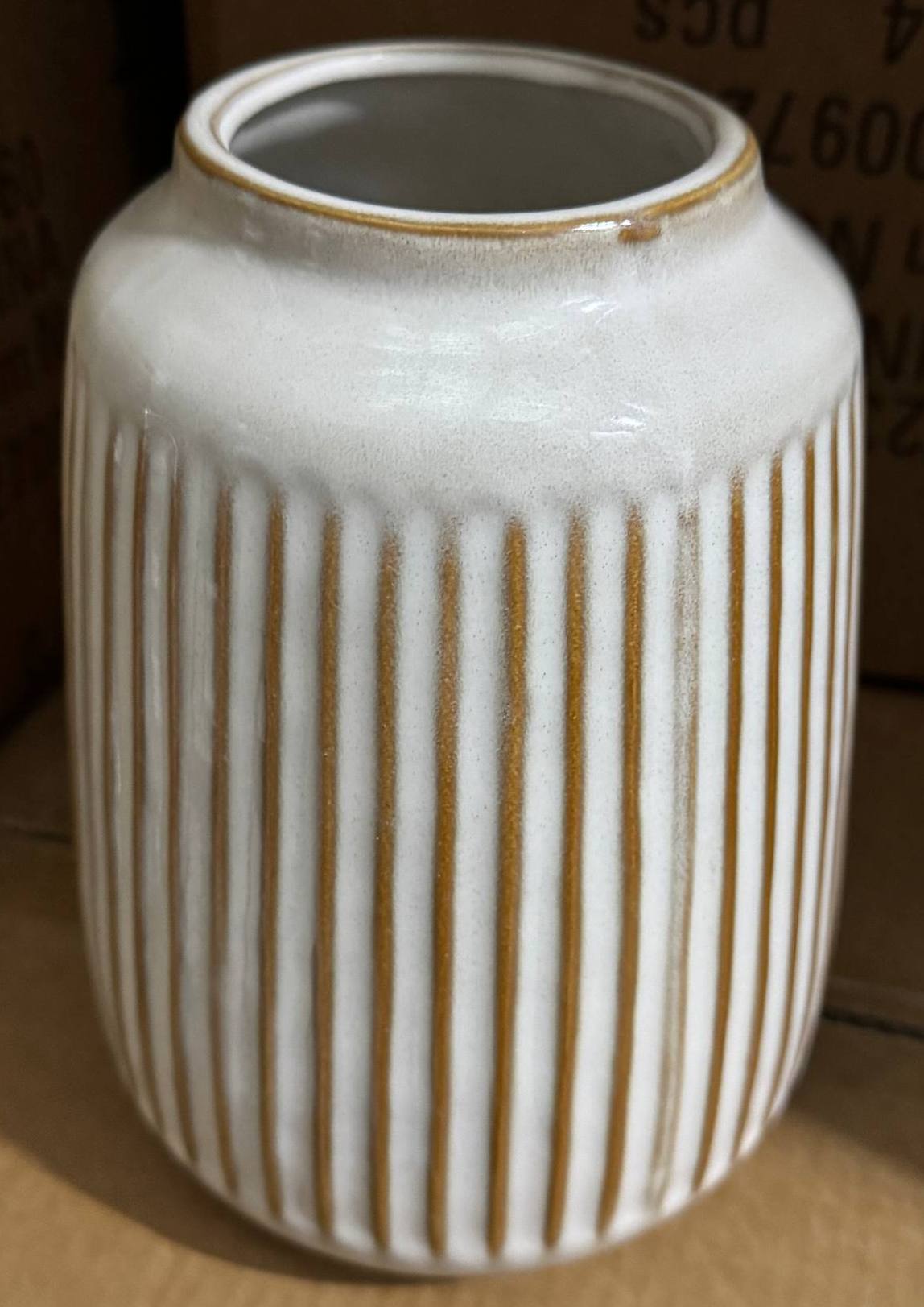 Ваза керамическая с вертикальными полосами, цвет коричнево-бежевый, 16,8*16,8*23 см.