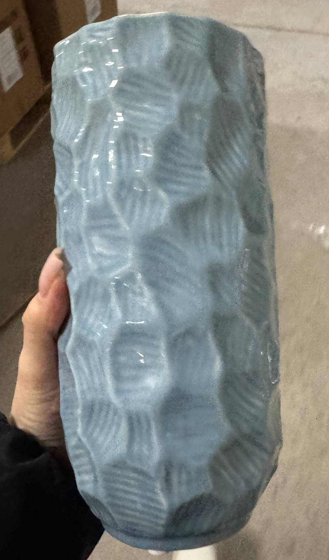 Ваза керамическая, цвет серо-голубой, 11*11*22,5 см.