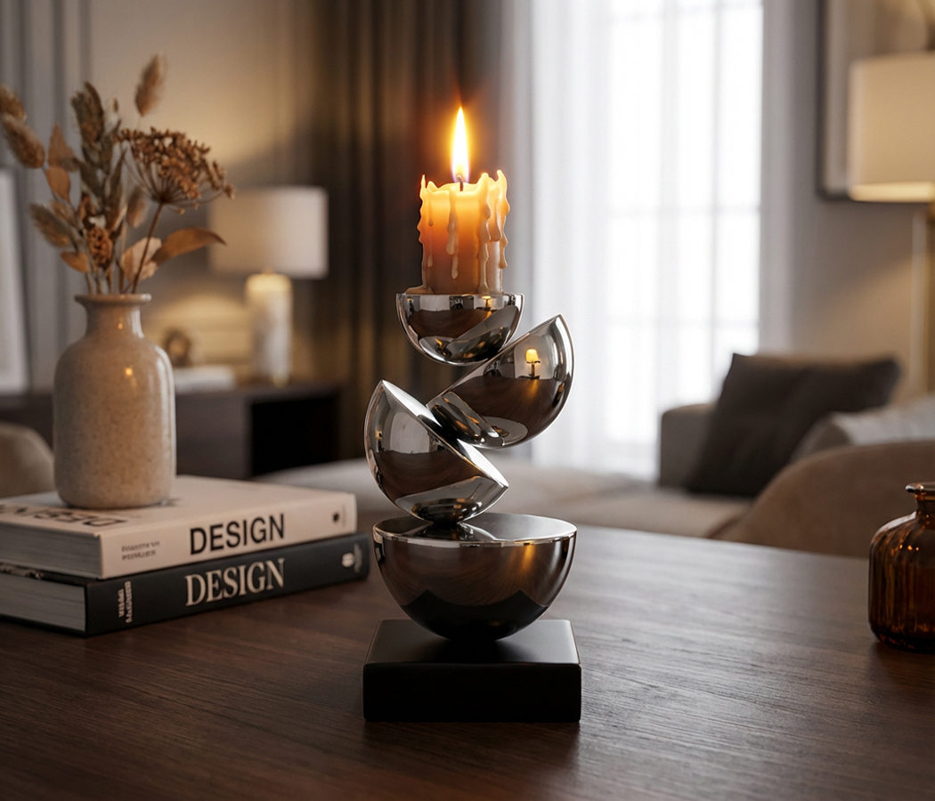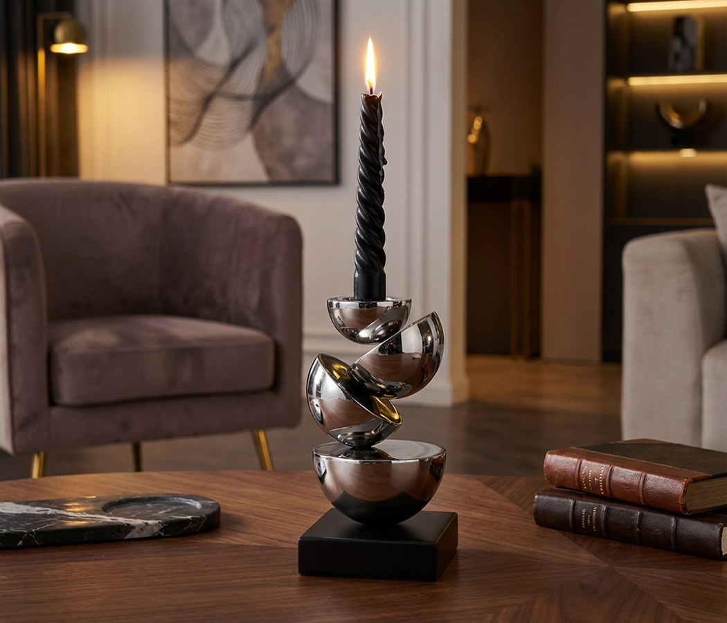 Подсвечник декоративный серия "Баланс", цвет серебро, 8*8*14,5 см