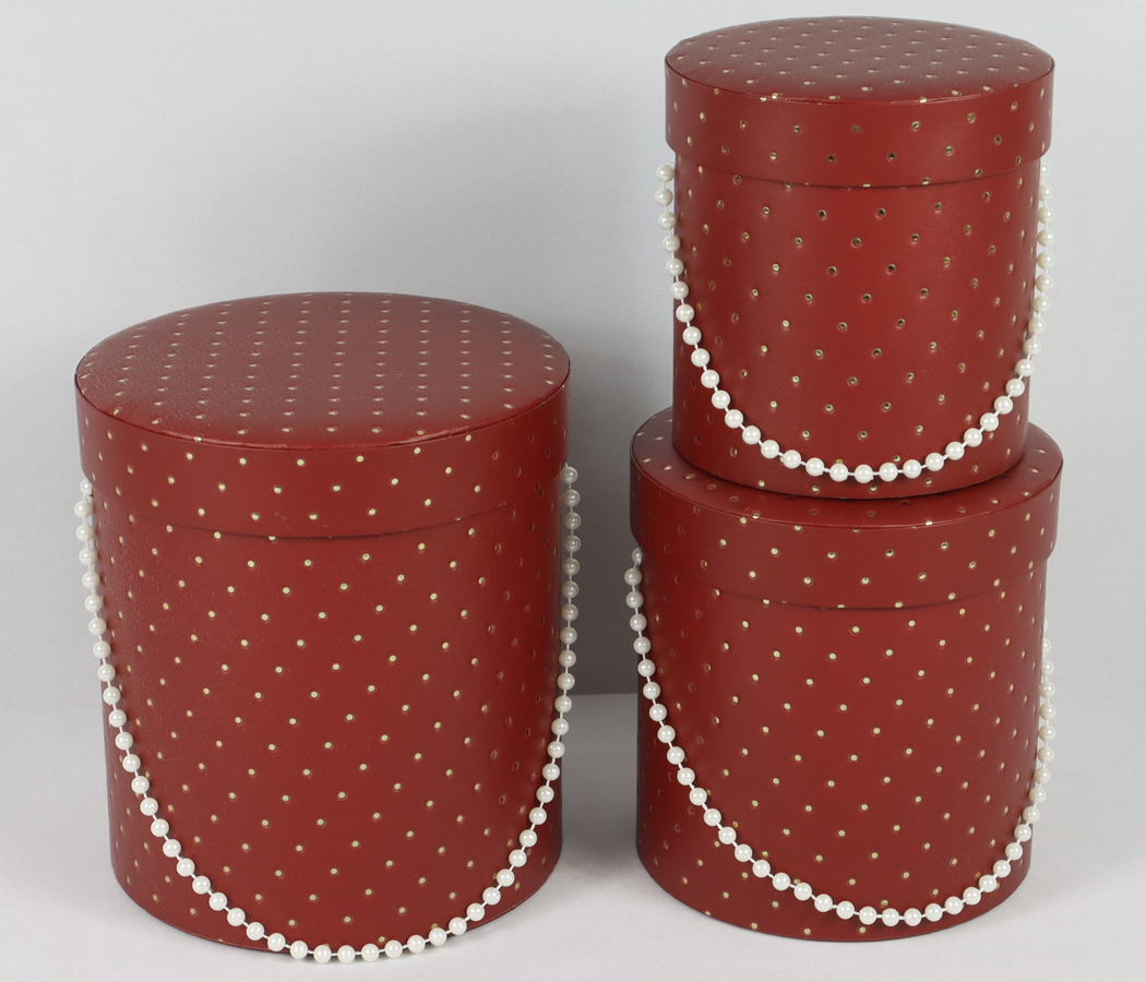 Набор коробок для цветов "Жемчужная россыпь"16,5x18H, 14,5x15H, 12,5*13H см, 3 шт., бургунди