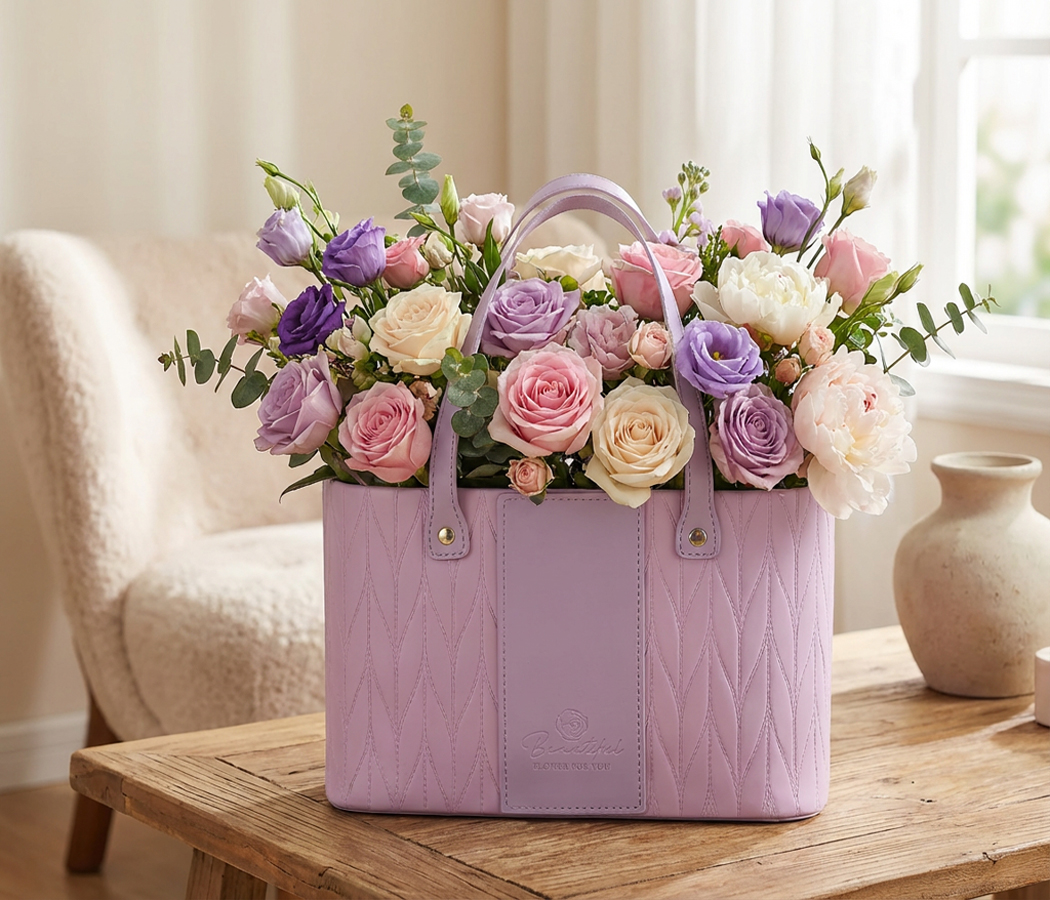 Коробка для цветов "Изысканная простота" 24,5*14*14,5, 1 шт., светло-сиреневый
