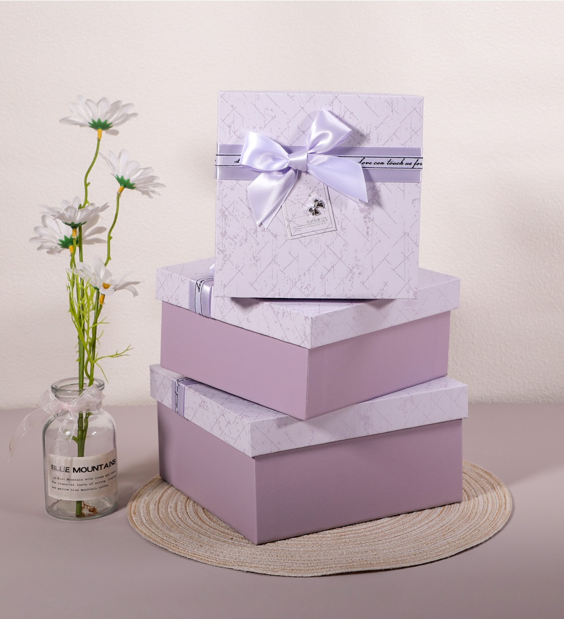 Набор коробок подарочных 19*19*9,5, 17*17*8, 15*15*6,5 см, 3 шт., св.сиреневый