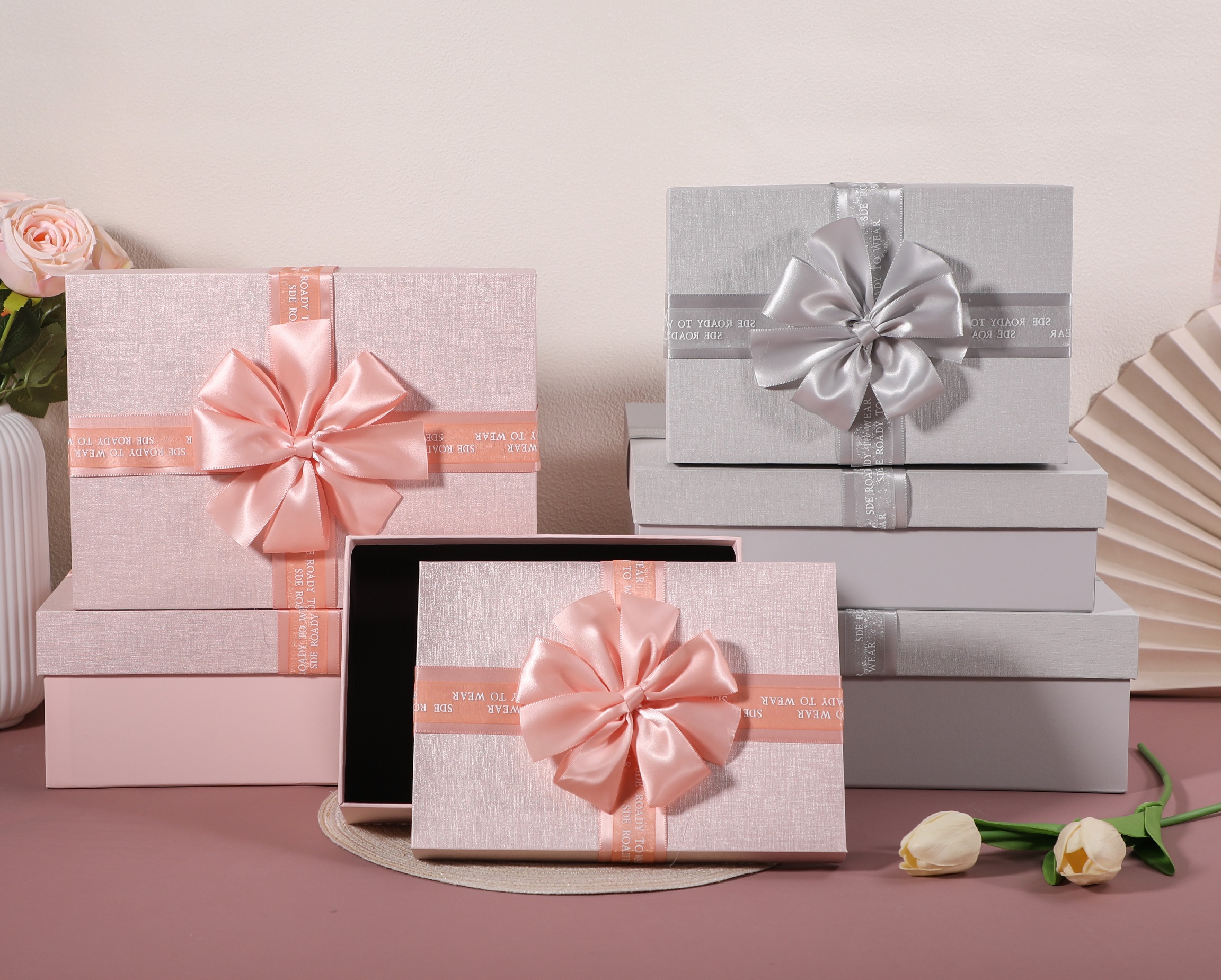Набор коробок подарочных 33,5*25*11,5, 29*21*9, 24,5*17*6,5 см, 3 шт., св.розовый