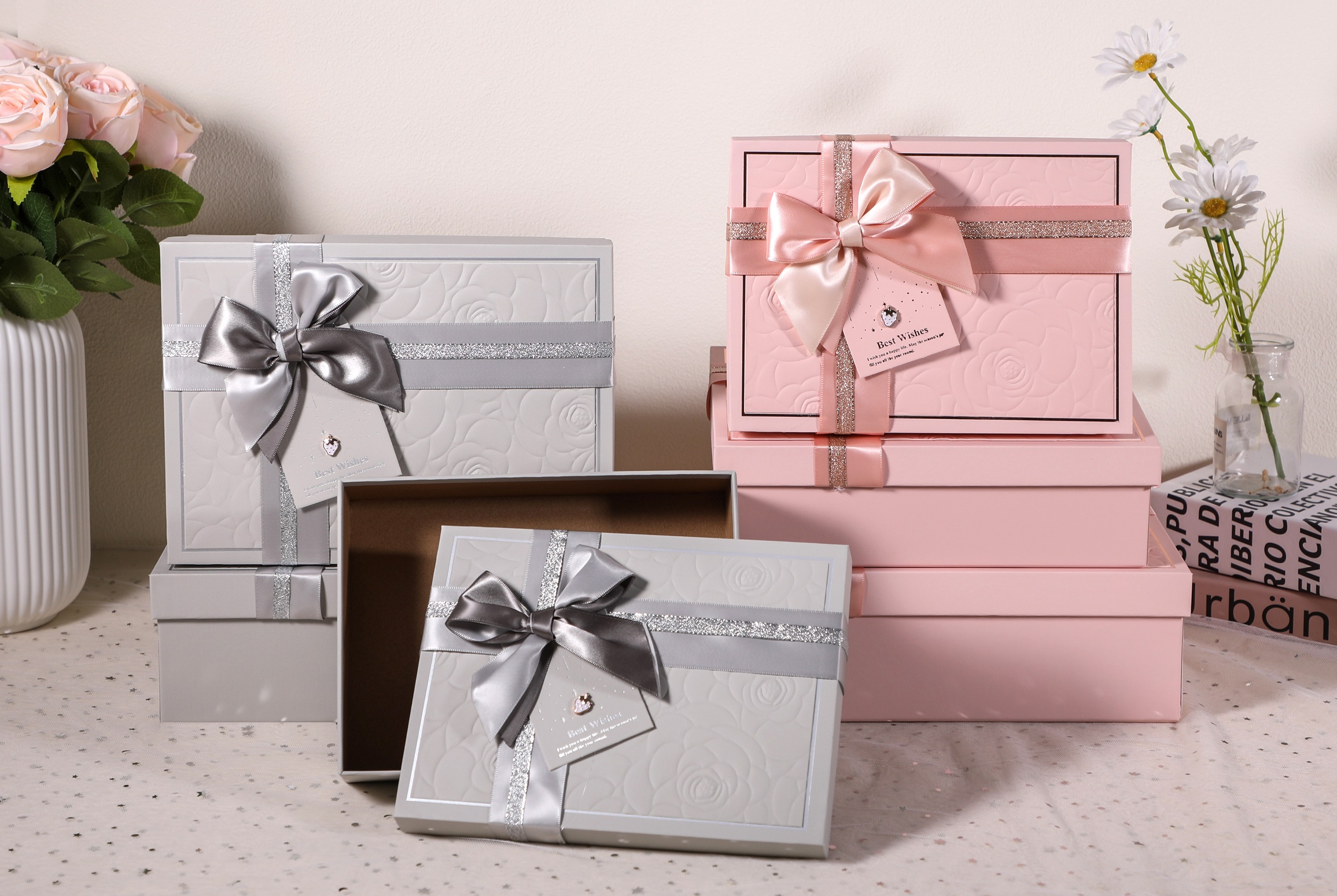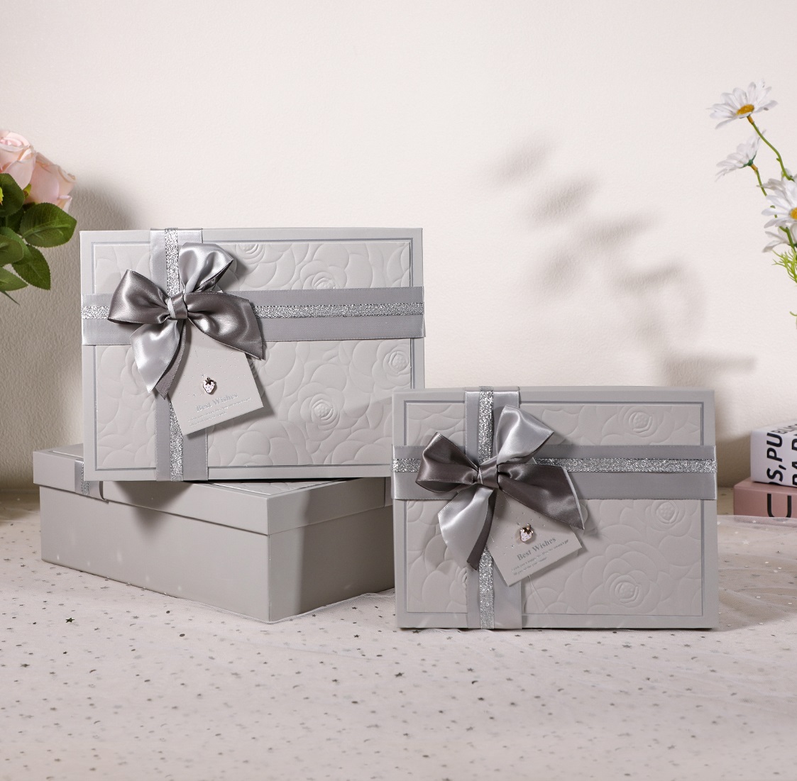 Набор коробок подарочных 29*21*9,5, 26*19*8, 23*17*6,5 см, 3 шт, светло-серый