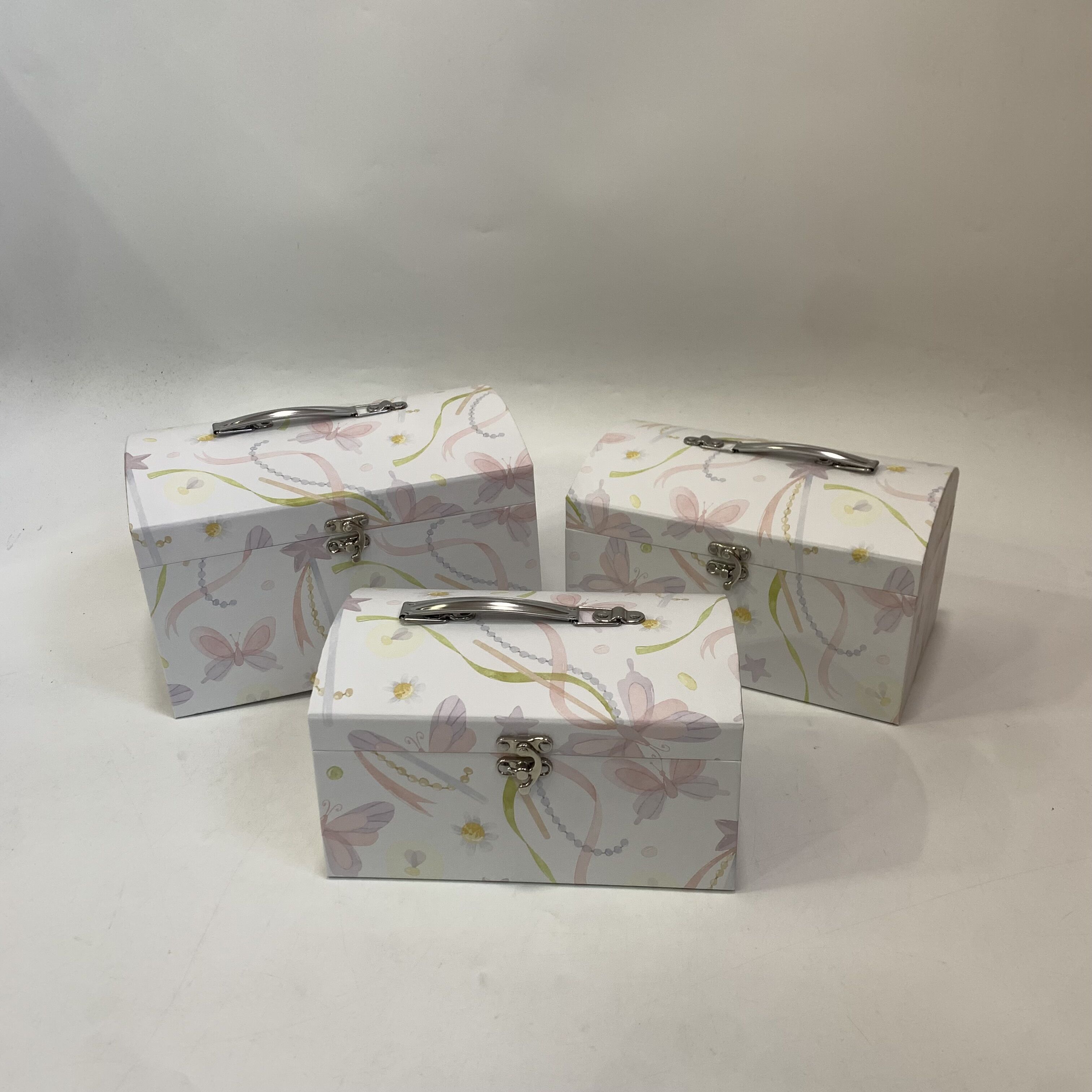 Набор коробок в виде сундука "Танец крыльев" 26x18x16,5cм, 24x16x14,5, 22x14x12,5 см, 3 шт., белый