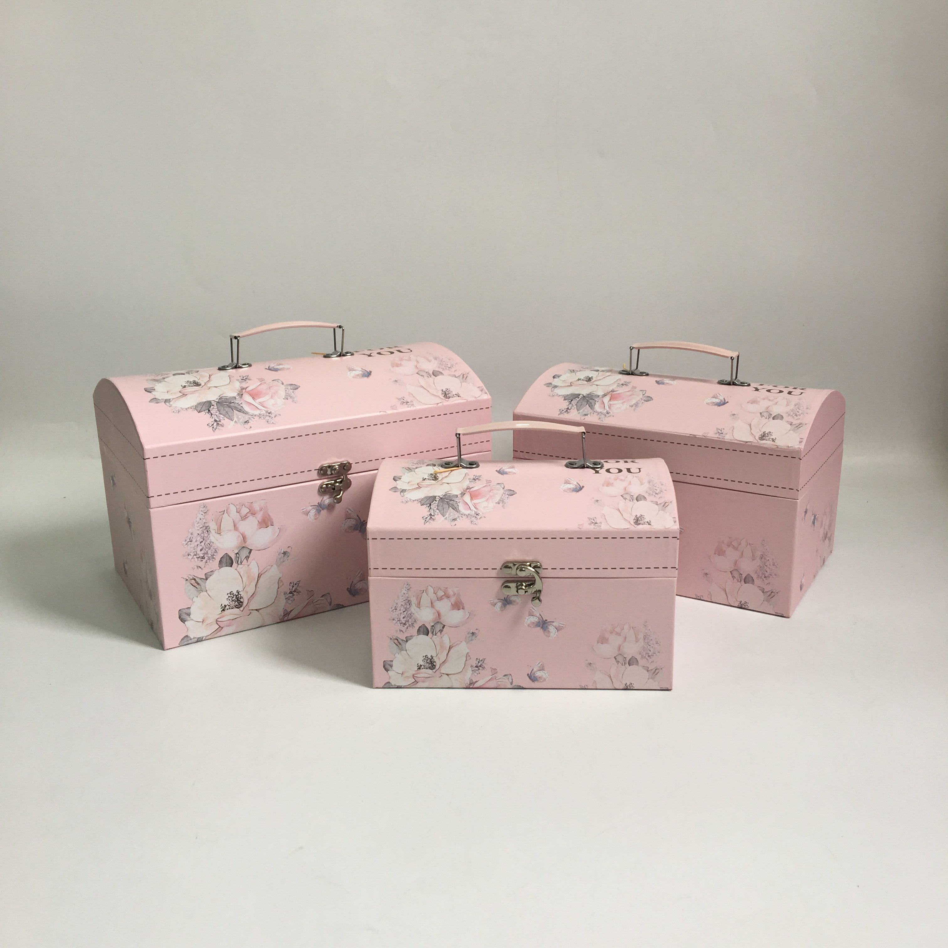 Набор коробок-сундучков "Мелодия цветов" 30x20x20, 26x17,5x17,5, 22x15x15 см , 3 шт., св.розовый