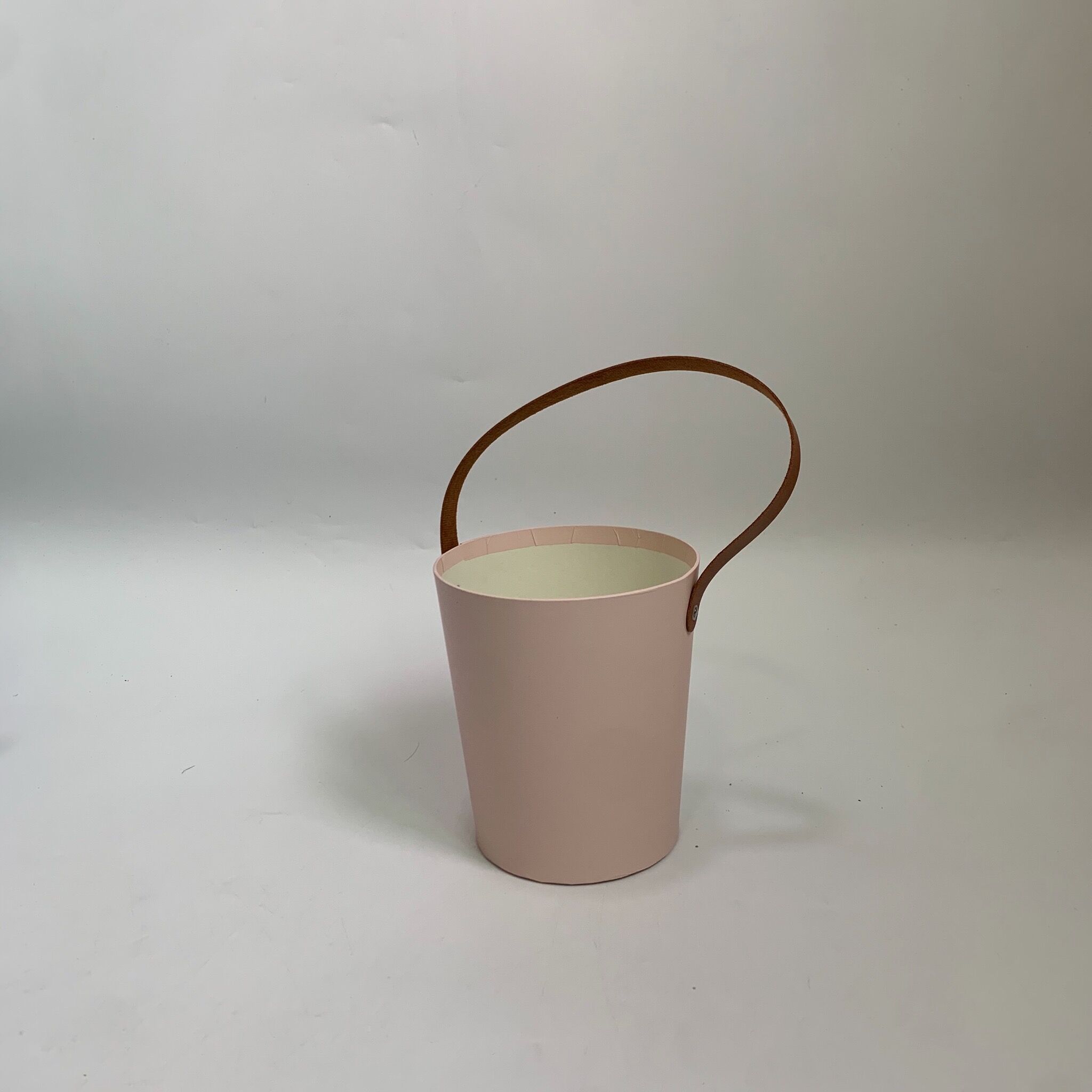 Коробка под цветы с ручкой из экокожи 15x17 см, 1 шт., светло-розовый
