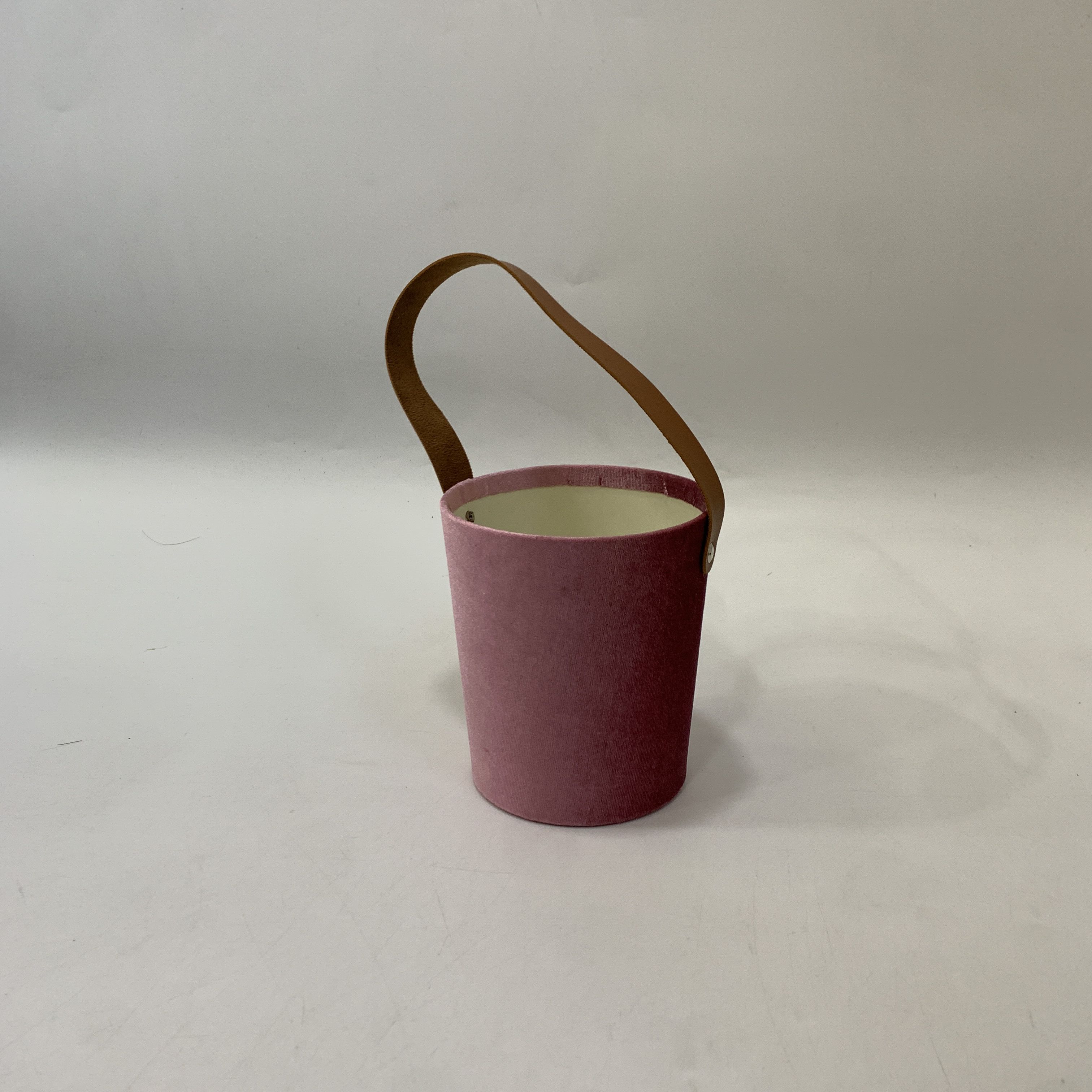 Коробка под цветы бархатная с ручкой из экокожи 13,8x15,2 см(диаметр дна 11,5 см), 1 шт., чайная роза