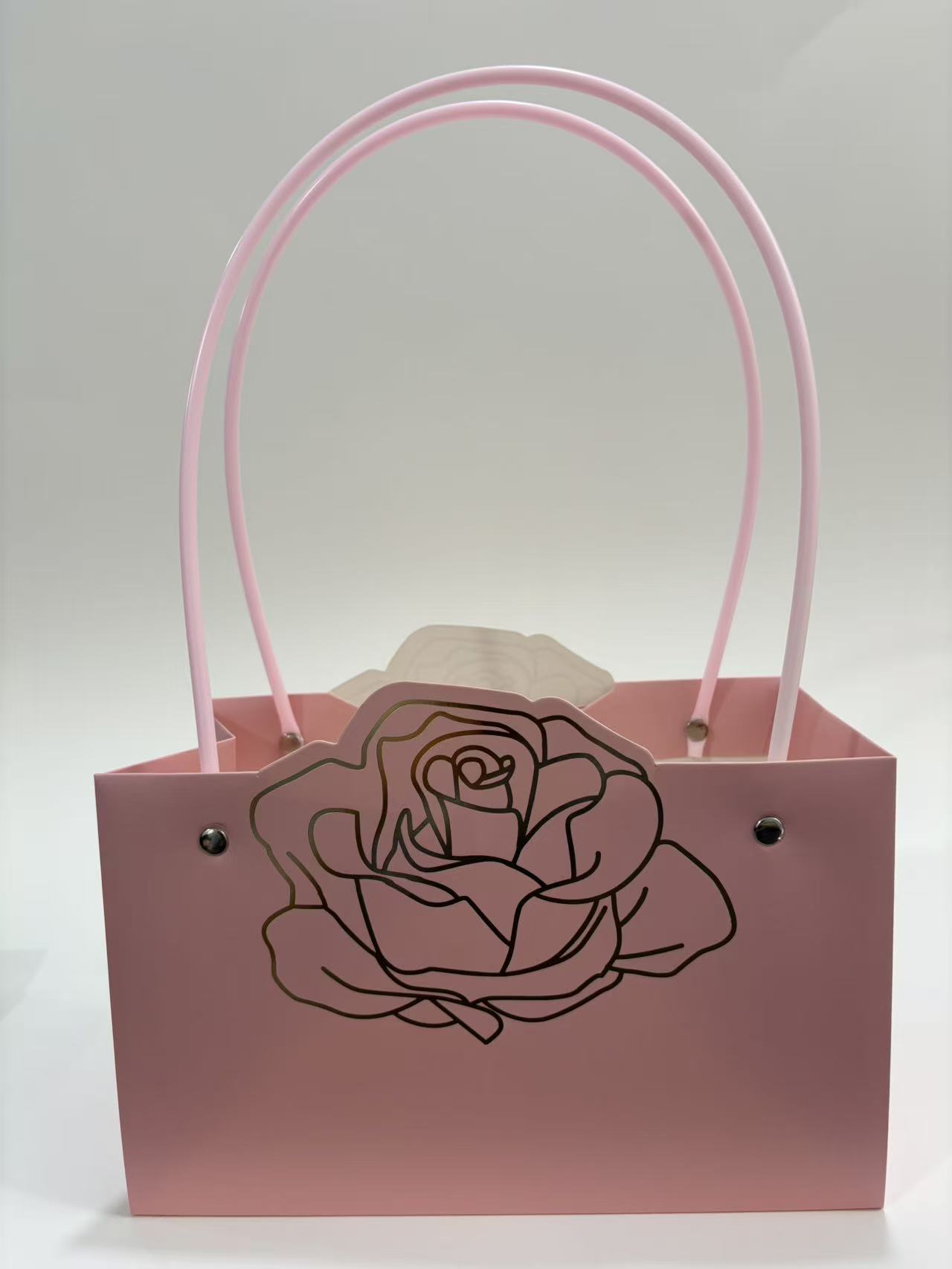 Пакет подарочный тисненый золотым фольгированием, 22*10.5*13.5 см 10 шт./упак., светло-розовый
