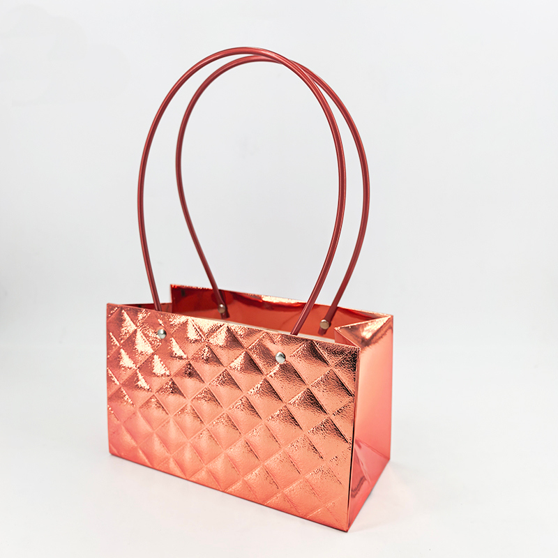 Пакет подарочный "Мастхэв" металллизированный тисненый прямоугольный, 22х10х13 см, 10 шт./упак., розовое золото
