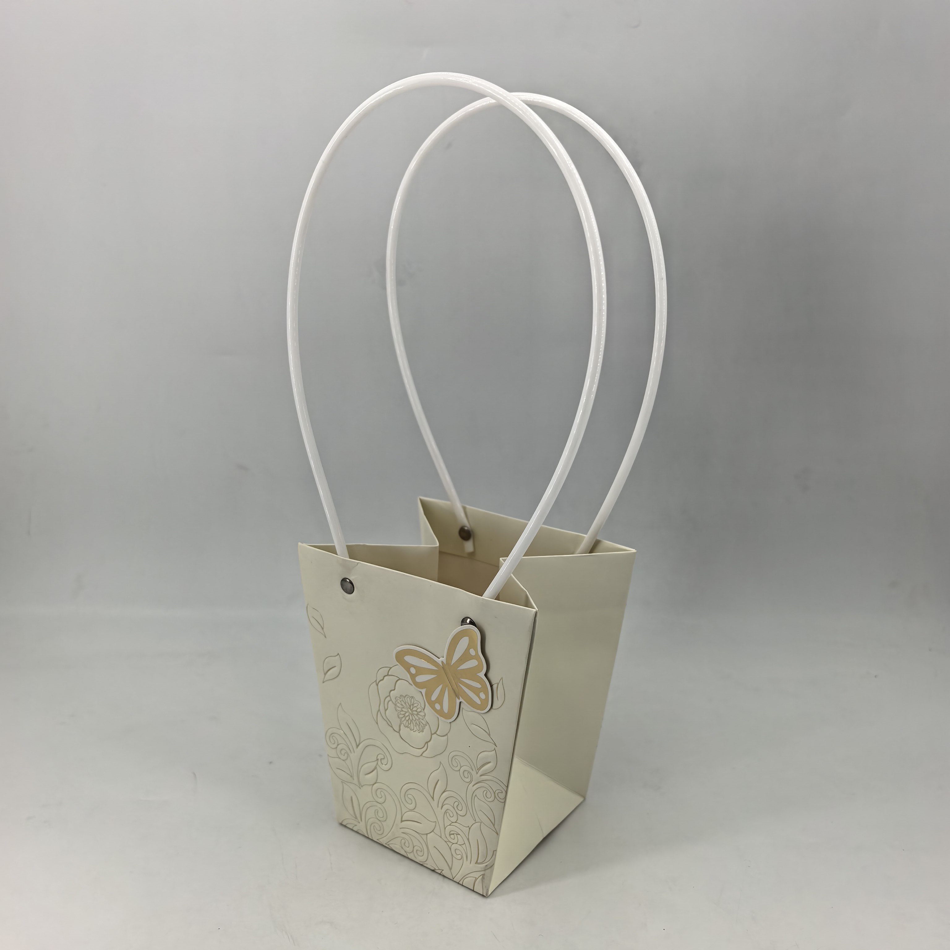 Пакет подарочный тисненый золотым фольгированием с бабочкой, 13*9.5*15.5 см 10 шт./упак., белый
