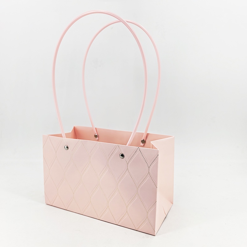 Пакет подарочный тисненый золотым фольгированием, 22*10.5*13.5 см 10 шт./упак, светло-розовый