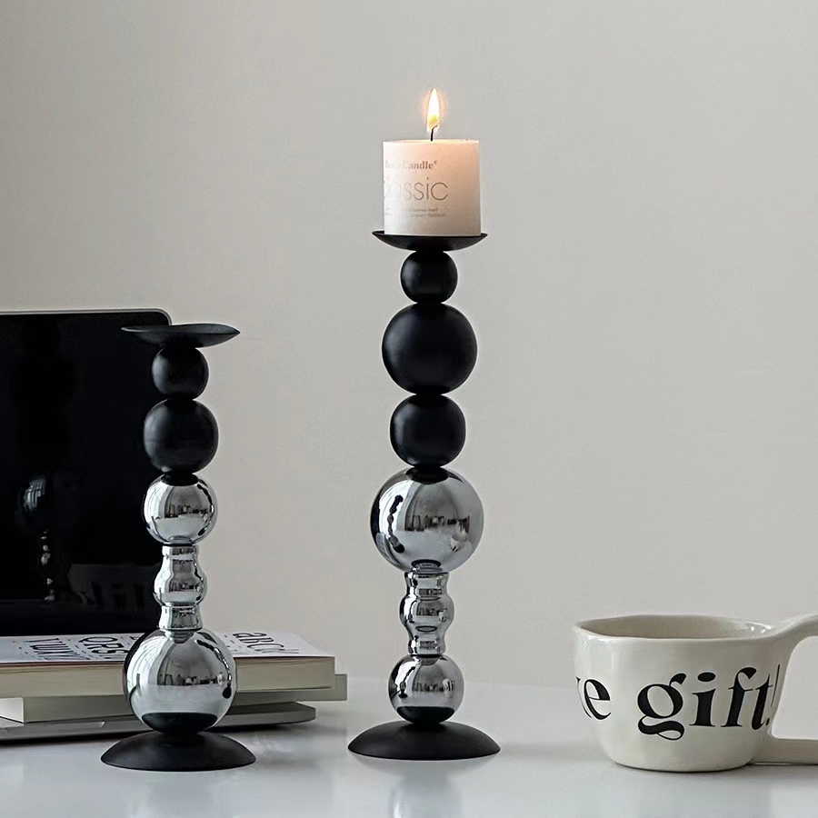 Подсвечник серия "Дуэт", цвет серебро/черный, 27 см
