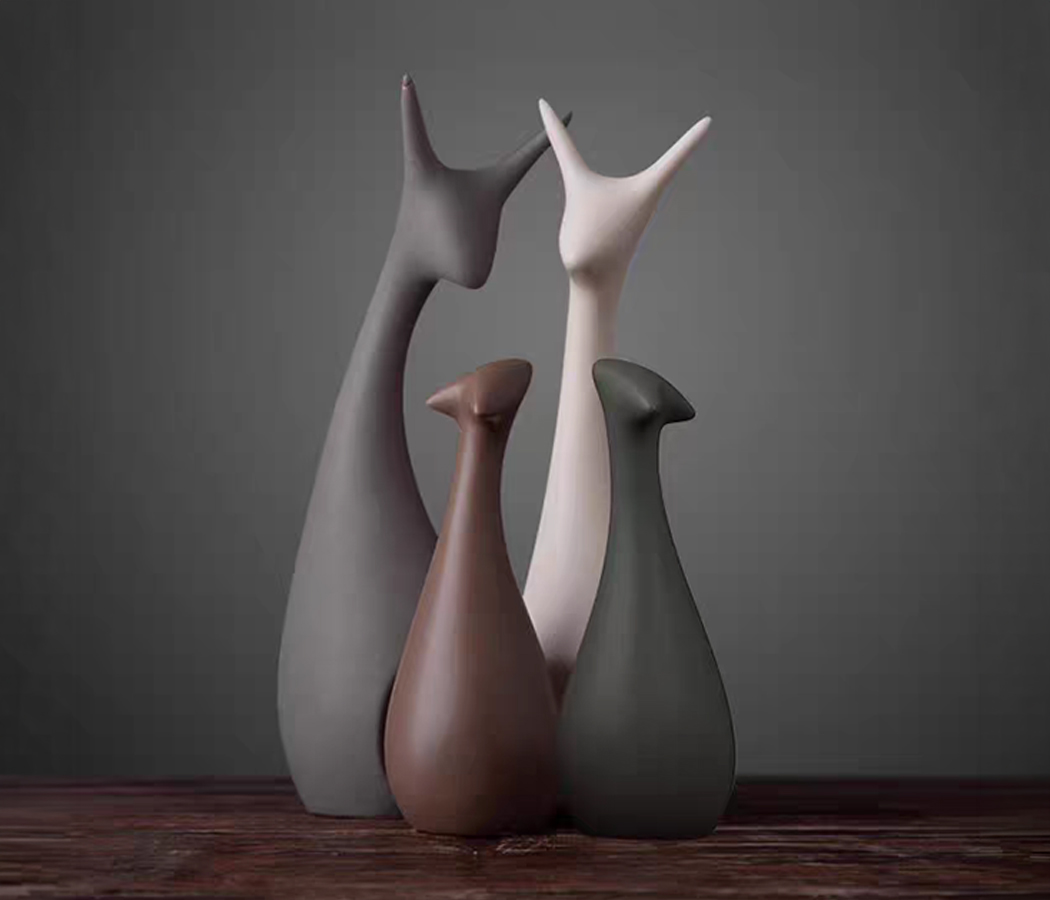 Набор декоративных статуэток 4 шт., керамика, цвет черный/коричневый/розовый, 25*7; 25*7; 15*6; 15*6 см.