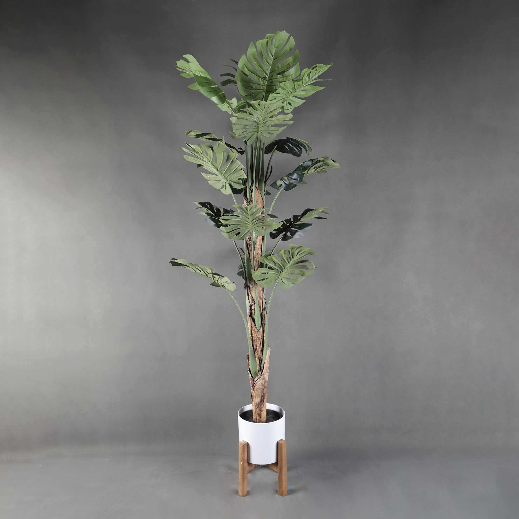 Искусственное растение "Монстера", в керамическом горшке на деревянной подставке, 68,5*200 см.