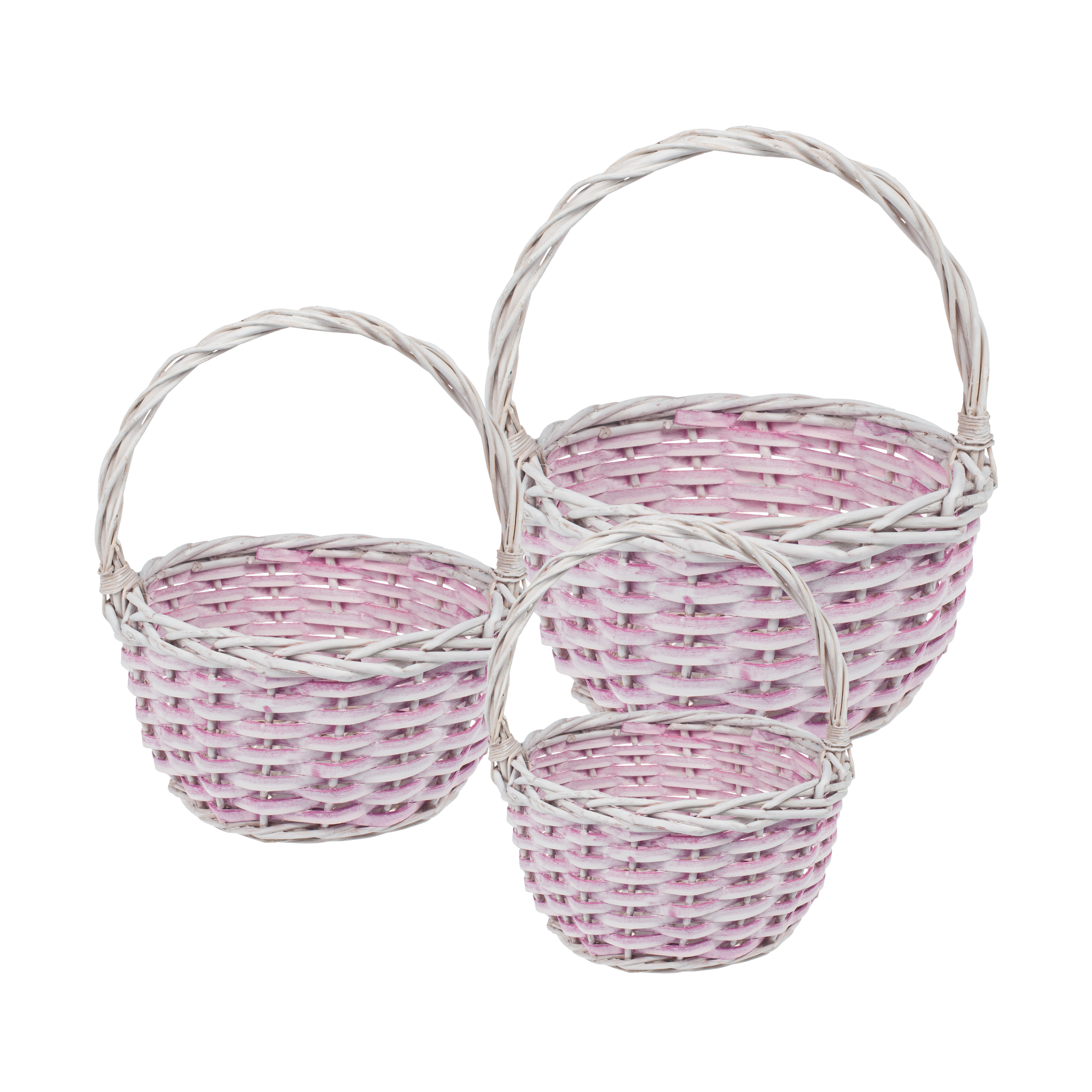 Набор корзин плетеных (ива), D26xH14/30 см, D21xH12/26 см, D16xH11/21 см, 3 шт. (Розовый)