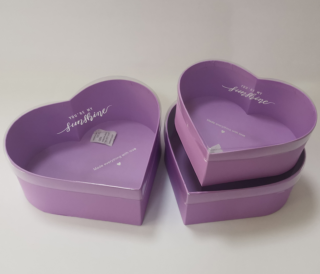 Набор коробок "Сердце" с прозр.крышкой, 3 шт. 23x20,7x9 / 20,7x18,4x8 / 18,4x16,1x7 см. сиреневый