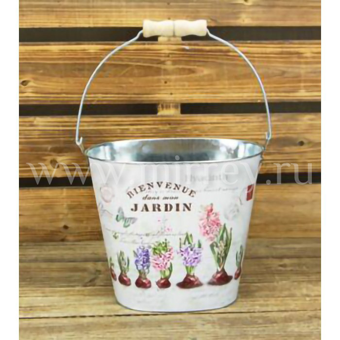 Декоративное овальное кашпо-ведерко "Жардин" 18X11.5XH15.5/26.5 см. металл