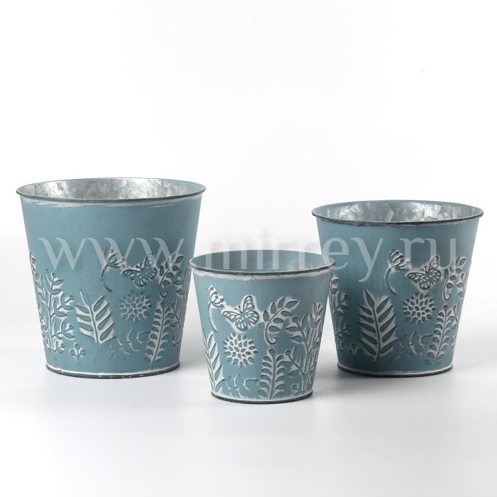 Набор декоративных кашпо L:18XH17.3 см, M:16XH15.3 см, S:13XH12.3 см, 3 шт., голубой, металл