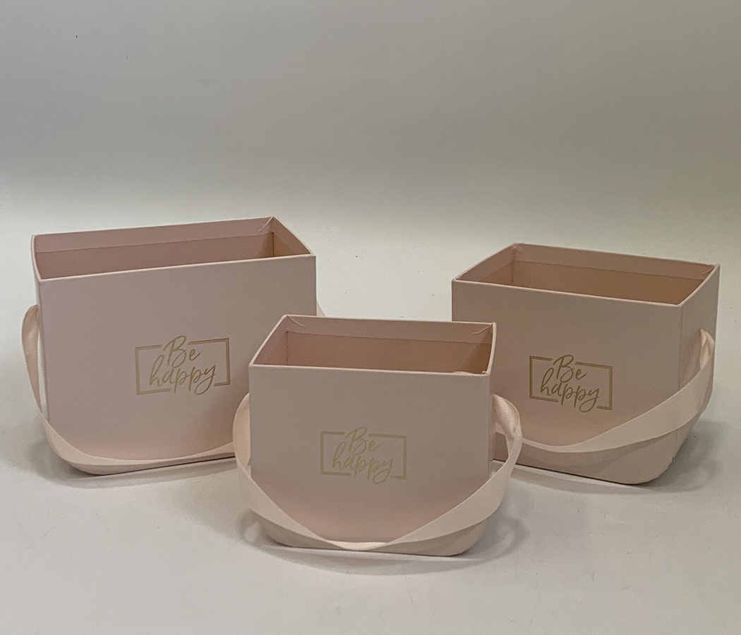 Набор коробок под цветы Сумочки "Be happy" 16,5x12x12,5 см, 14x11x11,5 см, 12,5x9x10 см, 3 шт., св.р