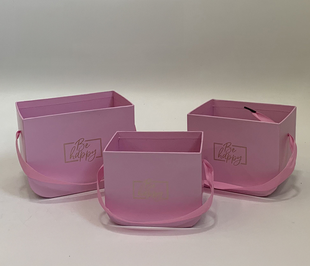 Набор коробок под цветы Сумочки "Be happy" 16,5x12x12,5 см, 14x11x11,5 см, 12,5x9x10 см, 3 шт., розо