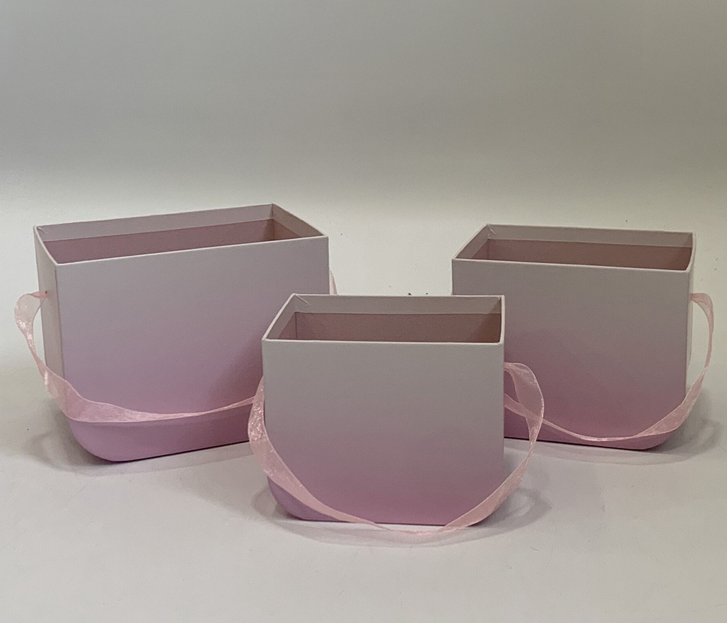 Набор коробок под цветы Сумочки "Be happy" 16,5x12x12,5 см, 14x11x11,5 см, 12,5x9x10 см, 3 шт., розо