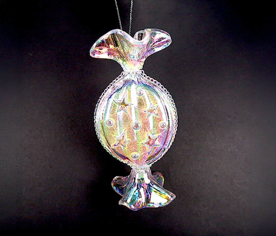 Фигурка декоративная "Конфетка прозрачная с эффектом радуги на подвеске", акрил, 10 см. 1 шт.