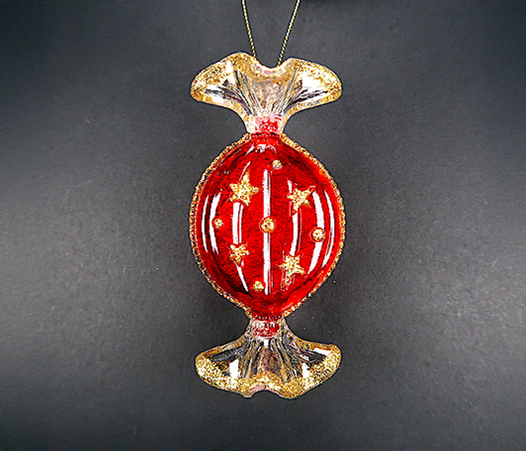 Фигурка декоративная "Конфетка прозрачная красн. с золот. росписью на подвеске", акрил, 10 см. 1 шт.
