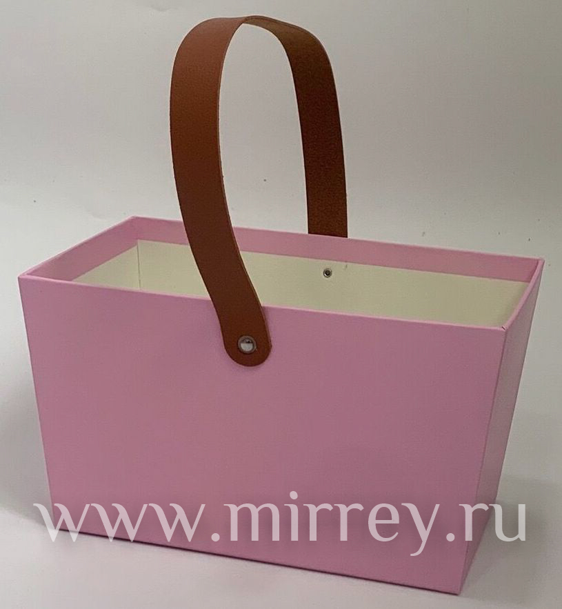 Коробка с кожаной ручкой 23x14,5x13 см, розовый